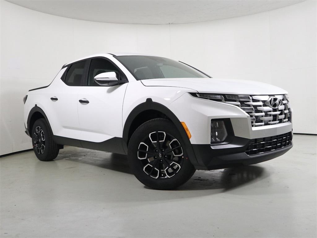 Features: Option Group 01, Santa Cruz SEL, 4D Crew Cab, 2.5L I4, 8-Speed Automatic with SHIFTRONIC, FWD, Atlas White, Gray Cloth, 18" x 7.5J Alloy Wheels, 4-Wheel Disc Brakes, 4.081 Axle Ratio, 6 Speakers, ABS brakes, Air Conditioning, Alloy wheels, AM/FM radio: SiriusXM, Apple CarPlay & Android Auto, Auto High-beam Headlights, Auto-leveling suspension, Automatic temperature control, Bed Cargo Net, Bed Mat, Brake assist, Bumpers: body-color, Carpeted Floor Mats, Delay-off headlights, Driver door bin, Driver vanity mirror, Dual C-Channel Utility Tracks on Bed Side, Dual front impact airbags, Dual front side impact airbags, Electronic Stability Control, Emergency communication system: Bluelink+, Envelope Cargo Net, Exterior Parking Camera Rear, First Aid Kit, Four wheel independent suspension, Front anti-roll bar, Front Bucket Seats, Front Center Armrest, Front dual zone A/C, Front reading lights, Fully automatic headlights, Heated door mirrors, Heated Front Bucket Seats, Heated front seats, Illuminated entry, Low tire pressure warning, Occupant sensing airbag, Outside temperature display, Overhead airbag, Overhead console, Panic alarm, Passenger door bin, Passenger vanity mirror, Power door mirrors, Power driver seat, Power steering, Power windows, Radio data system, Radio: AM/FM/HD Audio System, Rear anti-roll bar, Rear side impact airbag, Rear step bumper, Rear window defroster, Remote keyless entry, Security system, Speed control, Speed-sensing steering, Split folding rear seat, Spoiler, Stain & Odor Resistant Cloth Seat Trim, Steering wheel mounted audio controls, Tachometer, Tailgate Cover/Spoiler, Telescoping steering wheel, Tilt steering wheel, Traction control, Trip computer, Turn signal indicator mirrors, and Variably intermittent wipers.