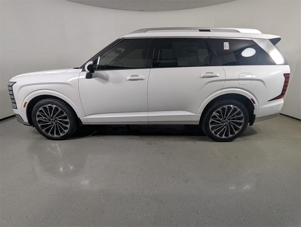 Features: Option Group 01, Palisade Calligraphy, 4D Sport Utility, V6, 8-Speed Automatic, FWD, Creamy White Pearl, Black Leather, 14 Speakers, 3rd row seats: split-bench, 4-Wheel Disc Brakes, ABS brakes, Air Conditioning, Alloy wheels, AM/FM radio: SiriusXM, Apple CarPlay & Android Auto, Audio memory, Auto High-beam Headlights, Auto-dimming door mirrors, Auto-dimming Rear-View mirror, Auto-leveling suspension, Automatic temperature control, Brake assist, Bumpers: body-color, Cargo Net, Cargo Tray, Carpeted Floor Mats, Compass, Delay-off headlights, Driver door bin, Driver vanity mirror, Dual front impact airbags, Dual front side impact airbags, Electronic Stability Control, Emergency communication system: Bluelink+, Exterior Parking Camera Rear, First Aid Kit, Four wheel independent suspension, Front anti-roll bar, Front Bucket Seats, Front Center Armrest, Front dual zone A/C, Front reading lights, Fully automatic headlights, Garage door transmitter: HomeLink, Genuine wood console insert, Genuine wood dashboard insert, Heads-Up Display, Heated & Ventilated Front Bucket Seats, Heated door mirrors, Heated front seats, Heated rear seats, Heated steering wheel, HVAC memory, Illuminated entry, Knee airbag, Leather steering wheel, Low tire pressure warning, Memory seat, Mud Guards, Navigation System, Occupant sensing airbag, Outside temperature display, Overhead airbag, Overhead console, Panic alarm, Passenger door bin, Passenger vanity mirror, Power door mirrors, Power driver seat, Power Liftgate, Power moonroof, Power passenger seat, Power steering, Power windows, Premium Nappa Leather Seat Trim, Radio data system, Radio: Infotainment Navigation System, Rain sensing wipers, Rear air conditioning, Rear anti-roll bar, Rear audio controls, Rear reading lights, Rear side impact airbag, Rear window defroster, Rear window wiper, Reclining 3rd row seat, Remote keyless entry, Security system, Speed control, Split folding rear seat, Spoiler, Steering wheel mounted audio controls, Tachometer, Telescoping steering wheel, Tilt steering wheel, Traction control, Trip computer, Turn signal indicator mirrors, Variably intermittent wipers, Ventilated front seats, Ventilated rear seats, and Wheels: 21" x 8.5J Alloy.