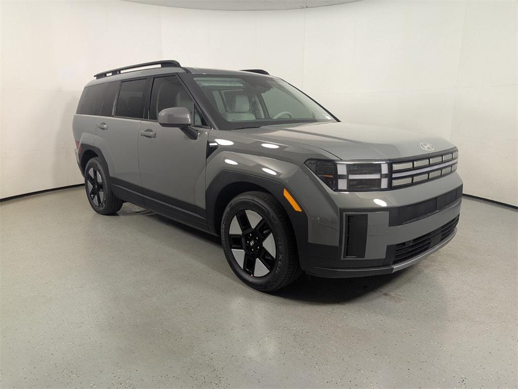 Features: Option Group 01, Santa Fe Hybrid SEL, 4D Sport Utility, I4, 6-Speed Automatic with Shiftronic, FWD, Hampton Gray, Gray Artificial Leather, 18" x 7.5J Alloy Wheels, 3rd row seats: bench, 4-Wheel Disc Brakes, 6 Speakers, ABS brakes, Air Conditioning, Alloy wheels, AM/FM radio: SiriusXM, Apple CarPlay & Android Auto, Auto High-beam Headlights, Automatic temperature control, Brake assist, Bumpers: body-color, Cargo Cover/Screen, Cargo Net, Carpeted Floor Mats, Delay-off headlights, Driver door bin, Driver vanity mirror, Dual front impact airbags, Dual front side impact airbags, Electronic Stability Control, Emergency communication system, Exterior Parking Camera Rear, Four wheel independent suspension, Front anti-roll bar, Front Bucket Seats, Front Center Armrest, Front dual zone A/C, Front reading lights, Fully automatic headlights, H-Tex Leatherette Seat Trim, Heated door mirrors, Heated Front Bucket Seats, Heated front seats, Illuminated entry, Knee airbag, Leather steering wheel, Low tire pressure warning, Occupant sensing airbag, Outside temperature display, Overhead airbag, Overhead console, Panic alarm, Passenger door bin, Passenger vanity mirror, Power door mirrors, Power driver seat, Power Liftgate, Power steering, Power windows, Radio: AM/FM/HD Display Audio, Rear anti-roll bar, Rear seat center armrest, Rear side impact airbag, Rear window defroster, Rear window wiper, Remote keyless entry, Security system, Speed control, Speed-sensing steering, Split folding rear seat, Spoiler, Steering wheel mounted audio controls, Tachometer, Telescoping steering wheel, Tilt steering wheel, Traction control, Trip computer, Turn signal indicator mirrors, and Variably intermittent wipers.
