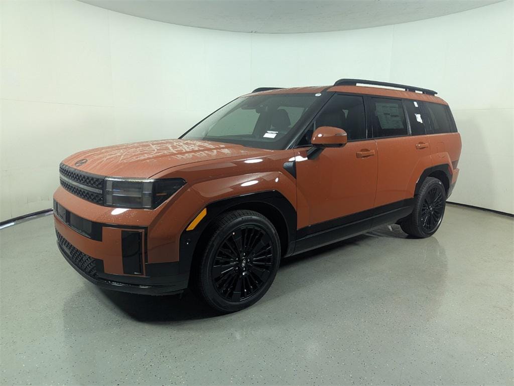 Features: Option Group 01, Santa Fe Hybrid Calligraphy, 4D Sport Utility, I4, 6-Speed Automatic with Shiftronic, AWD, Terracotta Orange, Black Leather, 12 Speakers, 3rd row seats: bench, 4-Wheel Disc Brakes, ABS brakes, Air Conditioning, Alloy wheels, AM/FM radio: SiriusXM, Apple CarPlay & Android Auto, Auto High-beam Headlights, Auto-dimming Rear-View mirror, Automatic temperature control, Brake assist, Bumpers: body-color, Delay-off headlights, Driver door bin, Driver vanity mirror, Dual front impact airbags, Dual front side impact airbags, Electronic Stability Control, Emergency communication system, Exterior Parking Camera Rear, First Aid Kit, Four wheel independent suspension, Front anti-roll bar, Front Bucket Seats, Front Center Armrest, Front dual zone A/C, Front reading lights, Fully automatic headlights, Garage door transmitter: HomeLink, Heads-Up Display, Heated & Ventilated Front Bucket Seats, Heated door mirrors, Heated front seats, Heated rear seats, Heated steering wheel, Illuminated entry, Knee airbag, Leather steering wheel, Low tire pressure warning, Memory seat, Navigation System, Occupant sensing airbag, Outside temperature display, Overhead airbag, Overhead console, Panic alarm, Passenger door bin, Passenger vanity mirror, Power door mirrors, Power driver seat, Power Liftgate, Power moonroof, Power passenger seat, Power steering, Power windows, Quilted Premium Nappa Leather Seat Trim, Radio: AM/FM/HD Bose Premium Audio System, Rain sensing wipers, Rear anti-roll bar, Rear side impact airbag, Rear window defroster, Rear window wiper, Remote keyless entry, Security system, Speed control, Speed-sensing steering, Split folding rear seat, Spoiler, Steering wheel mounted audio controls, Tachometer, Telescoping steering wheel, Tilt steering wheel, Traction control, Trip computer, Turn signal indicator mirrors, Variably intermittent wipers, Ventilated front seats, and Wheels: 20" x 8.5J Unique Dark Finish Alloy.
