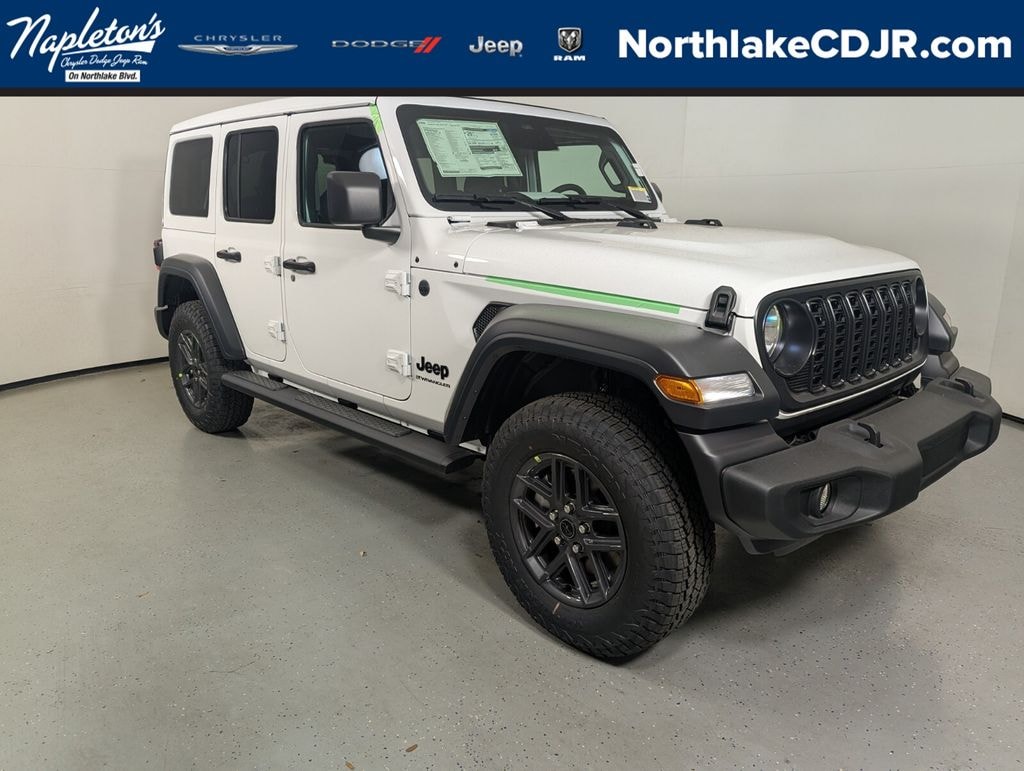 This Wrangler is well equipped with Convenience Group (2-Door Passive Entry, Front Door Locks, Air Filtering, Cluster 7.0" TFT Color Display, Emergency/Assistance Call, Heated Front Seats, Heated Steering Wheel, and Universal Garage Door Opener), Quick Order Package 24S Sport S (Advanced Brake Assist, Automatic Headlamps, Corning Gorilla Glass, Deep Tint Sunscreen Windows, Enhanced Adaptive Cruise Control, Full Speed Forward Collision Warning Plus, Power Heated Mirrors, Premium Wrapped Steering Wheel, Security Alarm, and Wheels: 17" x 7.5" Gray), Safety Group (Auto High Beam Headlamp Control, Injection Molded Black Rear Bumper, LED Taillamps, and ParkSense Rear Park Assist System), 3.45 Overall Top Gear Ratio, 4-Wheel Disc Brakes, 8 Speakers, ABS brakes, Air Conditioning, AM/FM radio: SiriusXM with 360L, Apple CarPlay/Android Auto, Aux Battery, Brake assist, Cloth Low-Back Bucket Seats, Compass, Delay-off headlights, Driver door bin, Driver vanity mirror, Dual front impact airbags, Dual front side impact airbags, Electronic Stability Control, Front anti-roll bar, Front Bucket Seats, Front Center Armrest w/Storage, Front fog lights, Front reading lights, Illuminated entry, Integrated roll-over protection, Low tire pressure warning, MOPAR All-Weather Floor Mats, Mopar Black Tubular Side Steps, Normal Duty Suspension, Occupant sensing airbag, Outside temperature display, Overhead airbag, Panic alarm, ParkView Rear Back-Up Camera, Passenger door bin, Passenger vanity mirror, Power steering, Power Top Quarter Window Storage Bag, Power windows, Radio data system, Rear anti-roll bar, Rear reading lights, Rear Window Defroster, Rear Window Wiper/Washer, Remote keyless entry, Remote Start System, Removable Rear Quarter Windows, Speed control, Split folding rear seat, Steering wheel mounted audio controls, Stop-Start Dual Battery System, Tachometer, Telescoping steering wheel, Tilt steering wheel, Traction control, Trip computer, Variably intermittent wipers, and Wheels: 17" x 7.5" Black Steel Styled. Price includes: Not all customers qualify for all rebates. See dealer for details.$1500 - 2026 National Stellantis Loyalty Retail Bonus Cash . Exp. 02/02/2026 $3000 - 2026 National Select Inventory Bonus Cash. Exp. 01/04/2027 $500 - 2026 National 2026 First Responder Bonus Cash . Exp. 01/04/2027