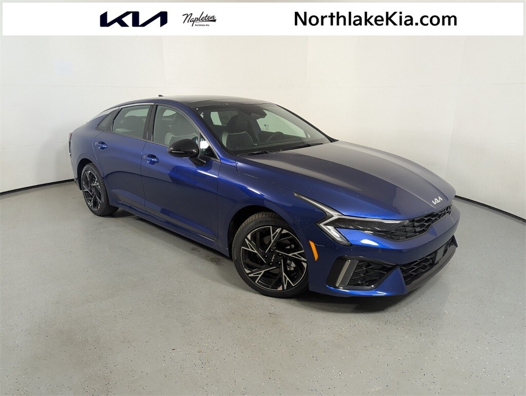 2025 Kia Yacht Blue K5 I4 GT-Line 25/36 City/Highway MPG 4-Wheel Disc Brakes, 6 Speakers, ABS brakes, Active Sound Design, Air Conditioning, Alloy wheels, AM/FM radio: SiriusXM, Auto High-beam Headlights, Automatic temperature control, Bose Premium Audio, Brake assist, Bumpers: body-color, Carpeted Floor Mats, Delay-off headlights, Driver door bin, Driver vanity mirror, Dual front impact airbags, Dual front side impact airbags, EC Mirror w/Homelink, Electronic Stability Control, Emergency communication system: Kia Connect (includes 1 year free trial), Four wheel independent suspension, Front anti-roll bar, Front Bucket Seats, Front Center Armrest, Front dual zone A/C, Front fog lights, Front reading lights, Fully automatic headlights, GT-Line Premium Package, Heated door mirrors, Heated Front Bucket Seats, Heated front seats, Heated steering wheel, Illuminated entry, Knee airbag, Leather Shift Knob, Leather steering wheel, LED Interior Lighting, Low tire pressure warning, Navigation System, Occupant sensing airbag, Outside temperature display, Overhead airbag, Overhead console, Panic alarm, Panoramic Sunroof, Passenger door bin, Passenger vanity mirror, Power door mirrors, Power driver seat, Power steering, Power windows, Radio data system, Radio: AM/FM Audio System, Rear anti-roll bar, Rear seat center armrest, Rear side impact airbag, Rear window defroster, Remote keyless entry, Security system, Speed control, Speed-sensing steering, Split folding rear seat, Sport steering wheel, Steering wheel mounted audio controls, Tachometer, Telescoping steering wheel, Tilt steering wheel, Traction control, Trip computer, Turn signal indicator mirrors, Variably intermittent wipers, Wheels: 18" x 7.5J Gloss Black Machined Finish Alloy. 25/36 City/Highway MPG