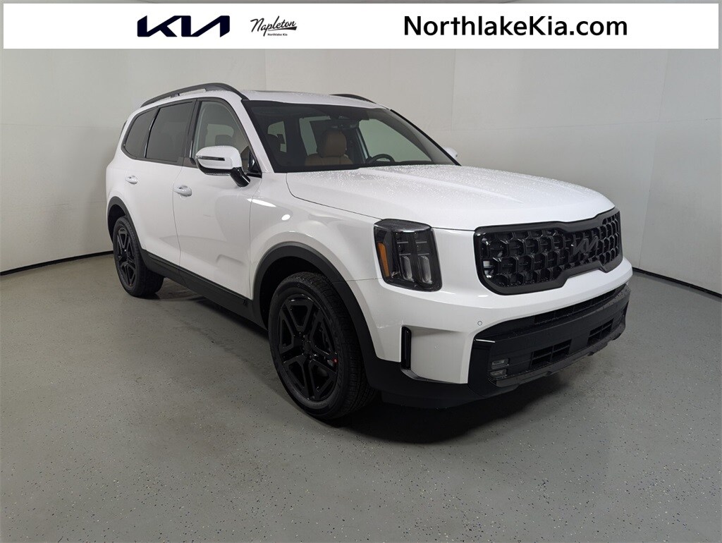 2025 Kia Glacial White Pearl Telluride 3.8L V6 DOHC SX-Prestige X-Line 18/23 City/Highway MPG 10 Speakers, 3rd row seats: split-bench, 4-Wheel Disc Brakes, ABS brakes, Air Conditioning, All Weather Floor Mats, Alloy wheels, AM/FM radio: SiriusXM, Apple CarPlay & Android Auto, Auto High-beam Headlights, Auto-dimming Rear-View mirror, Auto-leveling suspension, Automatic temperature control, Brake assist, Bumpers: body-color, Carpeted Floor Mats, Compass, Delay-off headlights, Driver door bin, Driver vanity mirror, Dual front impact airbags, Dual front side impact airbags, Electronic Stability Control, Emergency communication system: 911 Connect, Exterior Parking Camera Rear, Four wheel independent suspension, Front anti-roll bar, Front Bucket Seats, Front Center Armrest, Front dual zone A/C, Front fog lights, Front reading lights, Fully automatic headlights, Garage door transmitter: HomeLink, harman/kardon® Speakers, Heads-Up Display, Heated & Ventilated Front Bucket Seats, Heated door mirrors, Heated front seats, Heated rear seats, Heated steering wheel, Illuminated entry, Knee airbag, Leather Shift Knob, Leather steering wheel, Low tire pressure warning, Memory seat, Nappa Leather Seat Trim, Navigation System, Occupant sensing airbag, Outside temperature display, Overhead airbag, Overhead console, Panic alarm, Passenger door bin, Passenger vanity mirror, Power door mirrors, Power driver seat, Power Liftgate, Power moonroof, Power passenger seat, Power steering, Power windows, Radio data system, Radio: AM/FM Harman Kardon Audio System, Rain sensing wipers, Rear air conditioning, Rear anti-roll bar, Rear audio controls, Rear reading lights, Rear side impact airbag, Rear window defroster, Rear window wiper, Reclining 3rd row seat, Remote keyless entry, Security system, Speed control, Speed-sensing steering, Split folding rear seat, Spoiler, Steering wheel mounted audio controls, Tachometer, Telescoping steering wheel, Terracotta Interior Color Package, Tilt steering wheel, Traction control, Trip computer, Turn signal indicator mirrors, Variably intermittent wipers, Ventilated front seats, Ventilated rear seats, Wheels: 20" x 7.5" Black Finish X-LINE Exclusive.