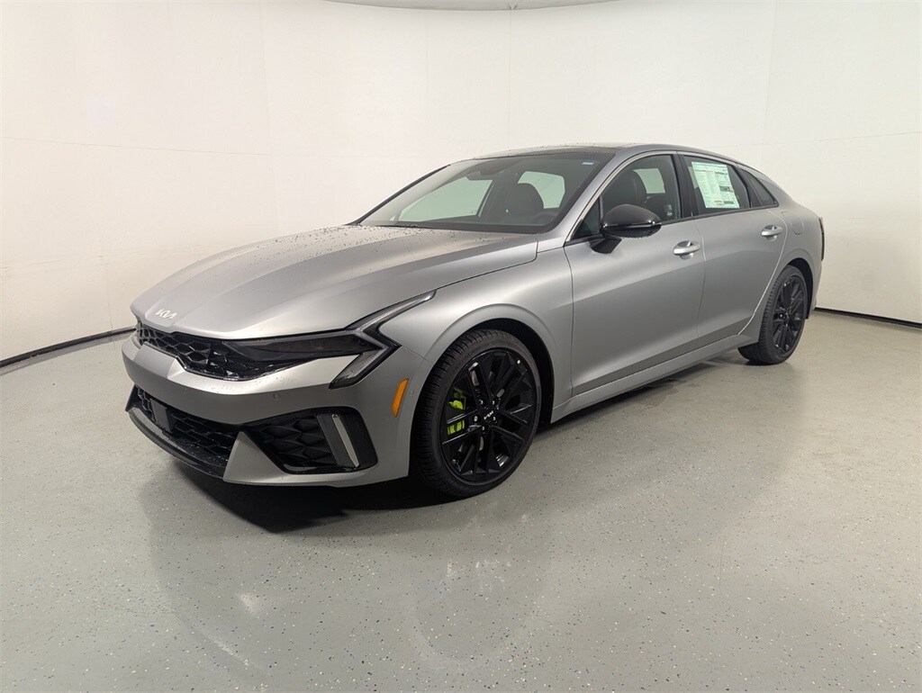 2026 Kia Steel Matte Gray K5 I4 GT 23/33 City/Highway MPG 12.3" Instrument Display, 2-Position Memory Driver's Seat & Outside Mirrors, 4-Wheel Disc Brakes, 6 Speakers, ABS brakes, Active Sound Design, Air Conditioning, Alloy wheels, AM/FM radio: SiriusXM, Auto High-beam Headlights, Auto Up/Down Front Passenger & Rear Windows, Auto-Dimming Mirror w/HomeLink, Automatic temperature control, Blind-Spot View Monitor, Bose Premium Audio, Brake assist, Bumpers: body-color, Carpeted Floor Mats, Delay-off headlights, Driver door bin, Driver vanity mirror, Dual front impact airbags, Dual front side impact airbags, Electronic Stability Control, Emergency communication system: Kia Connect (includes 1 year free trial), Four wheel independent suspension, Front anti-roll bar, Front Bucket Seats, Front Center Armrest, Front dual zone A/C, Front fog lights, Front reading lights, Fully automatic headlights, GT1 Package, Heated door mirrors, Heated front seats, Heated Sport Bucket Seats, Heated Steering Wheel, Illuminated entry, Knee airbag, Leather Shift Knob, Leather steering wheel, LED Trunk Light, Low tire pressure warning, Navigation System, Occupant sensing airbag, Outside temperature display, Overhead airbag, Overhead console, Panic alarm, Parking Collision Avoidance-Assist - Reverse, Parking Distance Warning - Side, Passenger door bin, Passenger vanity mirror, Power door mirrors, Power driver seat, Power Folding Mirrors, Power Front Passenger Seat, Power moonroof, Power steering, Power windows, Radio data system, Radio: AM/FM Audio System, Rear anti-roll bar, Rear reading lights, Rear seat center armrest, Rear side impact airbag, Rear window defroster, Remote keyless entry, Security system, Smartphone Digital Key, Speed control, Speed-sensing steering, Split folding rear seat, Sport steering wheel, Steering wheel mounted audio controls, Surround View Monitor, SynTex Seat Trim, Tachometer, Telescoping steering wheel, Tilt steering wheel, Traction control, Trip computer, Turn signal indicator mirrors, Variably intermittent wipers, Ventilated Front Seats, Wheels: 19" x 8.0J Gloss Black Custom Alloy, Wheels: 19" x 8.0J Gloss Black Machined Finish Alloy. 23/33 City/Highway MPG
