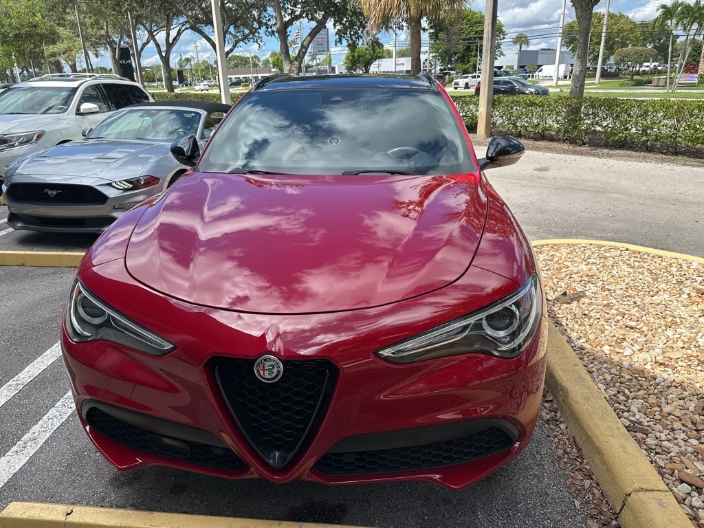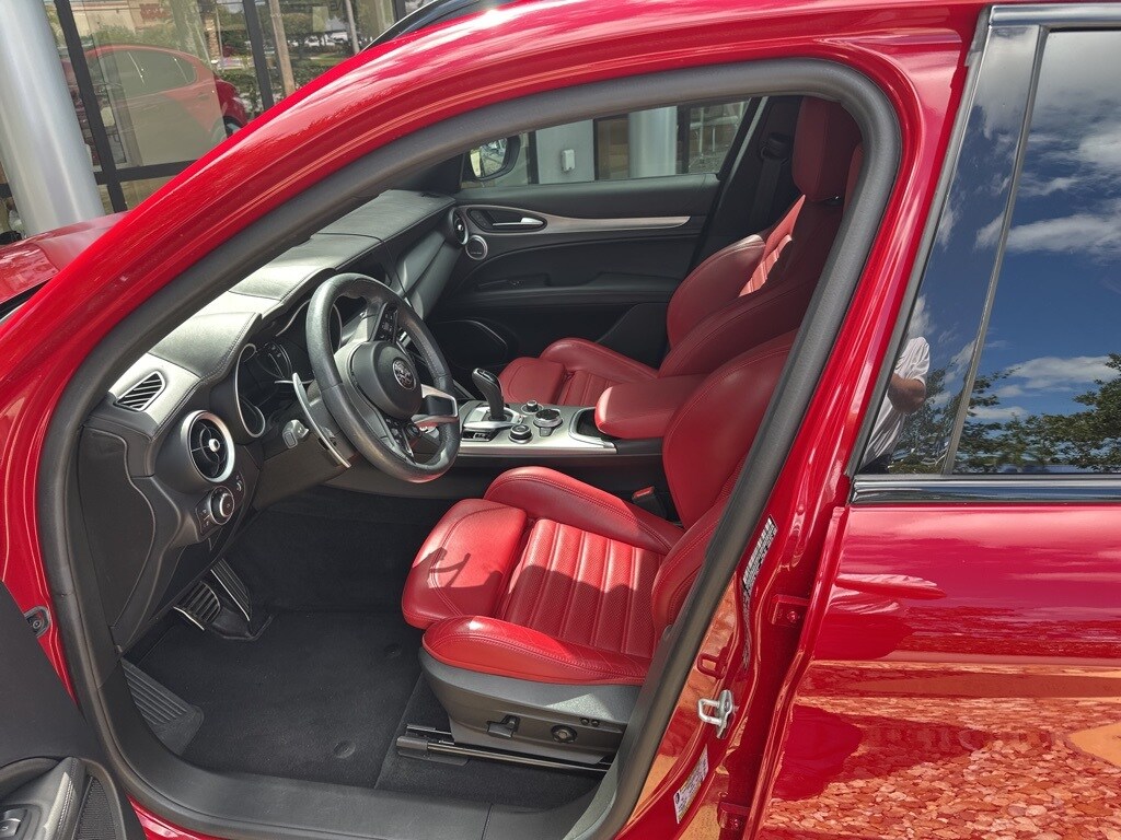 2022 Alfa Romeo Stelvio Veloce Beautifully finished in Alfa Rosso with Black Leather interior. I4 4D Sport Utility AWD 8-Speed Automatic 115V Auxiliary Power Outlet, 3.73 Axle Ratio, 4-Wheel Disc Brakes, 8 Speakers, ABS brakes, Air Conditioning, Alloy wheels, Aluminum Interior Trim, Aluminum Steering Column Mounted Paddle Shifters, AM/FM radio: SiriusXM, Apple CarPlay/Android Auto, Auto High-beam Headlights, Auto-dimming door mirrors, Auto-dimming Rear-View mirror, Automatic temperature control, Body Color Appearance Kit, Brake assist, Bumpers: body-color, Compass, Dark Miron V Scudetto Grille, Delay-off headlights, Driver door bin, Driver vanity mirror, Dual front impact airbags, Dual front side impact airbags, Electronic Stability Control, Emergency communication system: SiriusXM Guardian - included trial, Four wheel independent suspension, Front anti-roll bar, Front Bucket Seats, Front Center Armrest, Front dual zone A/C, Front reading lights, Fully automatic headlights, Garage door transmitter, Genuine wood console insert, Genuine wood dashboard insert, Genuine wood door panel insert, Gloss Black Window Surround Moldings, Gloss Red Calipers w/White Script, harman/kardon Premium Audio, Headlight cleaning, Heated door mirrors, Heated front seats, Heated rear seats, Heated steering wheel, High intensity discharge headlights: Bi-Xenon, Illuminated entry, Knee airbag, Leather Dash & Upper Doors, Leather Seats, Leather Shift Knob, Leather steering wheel, Limited Slip Differential Rear Axle, Low tire pressure warning, Memory seat, Navigation System, Occupant sensing airbag, Outside temperature display, Overhead airbag, Overhead console, Panic alarm, ParkView Rear Back-Up Camera, Passenger door bin, Passenger vanity mirror, Power 8-Way Adjustable Driver Seat, Power Adjust 8-Way Front Passenger Seat, Power Adjustable Bolster, Power door mirrors, Power driver seat, Power Liftgate, Power moonroof, Power passenger seat, Power steering, Power windows, Premium Interior & Sound Package, Quick Order Package 22S Veloce, Radio data system, Radio: AM/FM/HD 8.8" w/Navigation, Rain sensing wipers, Rear anti-roll bar, Rear audio controls, Rear fog lights, Rear reading lights, Rear seat center armrest, Rear window defroster, Rear window wiper, Red Seats, Remote keyless entry, Security system, Speed control, Speed-sensing steering, Speed-Sensitive Wipers, Split folding rear seat, Spoiler, Sport Leather Seats, Sport Rear Diffuser, Sport steering wheel, Steering wheel mounted audio controls, Tachometer, Telescoping steering wheel, Tilt steering wheel, Traction control, Trip computer, Turn signal indicator mirrors, Variably intermittent wipers, Wheels: 19" x 8.0" Sport 5-Hole Aluminum, Wheels: 20" x 8.5" Sport 5-Hole Aluminum. 22/28 City/Highway MPG