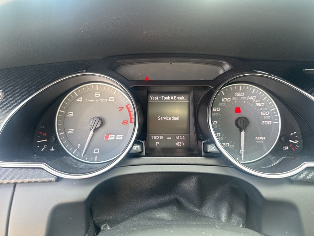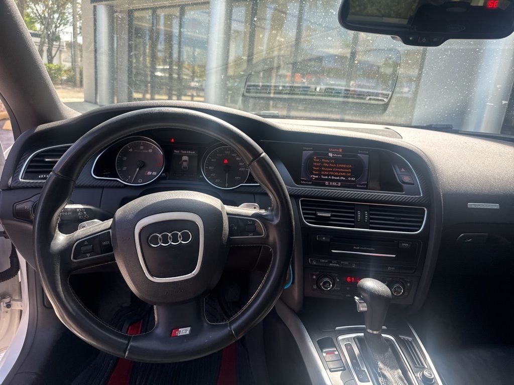 2012 Audi S5 4.2 Premium Plus quattro Beautifully finished in White with silk Leather interior. 4.2L V8 FSI DOHC 2D Coupe quattro 6-Speed Automatic with Tiptronic 10 Speakers, 4-Wheel Disc Brakes, 6-Step Heated Front Seats, 8.5J x 19" 5-Parallel Spoke Star-Design Wheels, ABS brakes, Air Conditioning, Alloy wheels, AM/FM radio: SIRIUS, Auto-dimming door mirrors, Auto-dimming Rear-View mirror, Automatic temperature control, Brake assist, Bumpers: body-color, CD player, Compass, Delay-off headlights, Driver door bin, Driver vanity mirror, Dual front impact airbags, Dual front side impact airbags, Electronic Stability Control, Four wheel independent suspension, Front anti-roll bar, Front Bucket Seats, Front Center Armrest, Front dual zone A/C, Front fog lights, Front reading lights, Garage door transmitter: HomeLink, Headlight cleaning, Heated door mirrors, Heated front seats, High intensity discharge headlights: Xenon plus, Illuminated entry, Knee airbag, Leather Shift Knob, Leather steering wheel, Low tire pressure warning, Memory seat, Occupant sensing airbag, Outside temperature display, Overhead airbag, Overhead console, Panic alarm, Passenger door bin, Passenger vanity mirror, Power door mirrors, Power driver seat, Power moonroof, Power passenger seat, Power steering, Power windows, Radio data system, Radio: Audi Premium 1CD Sound System, Rain sensing wipers, Rear air conditioning, Rear anti-roll bar, Rear fog lights, Rear reading lights, Rear seat center armrest, Rear window defroster, Remote keyless entry, Security system, Silk Nappa Leather Seat Trim, Speed control, Speed-sensing steering, Speed-Sensitive Wipers, Split folding rear seat, Sport steering wheel, Steering wheel mounted audio controls, Tachometer, Telescoping steering wheel, Tilt steering wheel, Traction control, Trip computer, Turn signal indicator mirrors, Variably intermittent wipers.