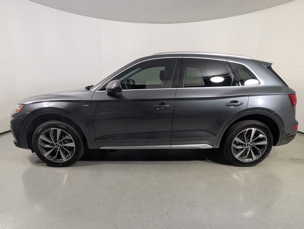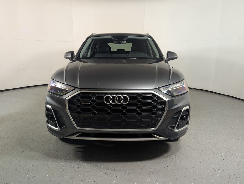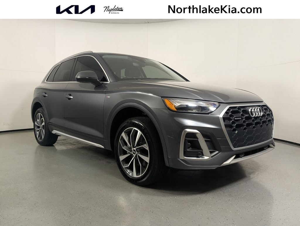 2023 Audi Q5 45 S line Premium quattro Beautifully finished in Chronos Gray Metallic with Rock Gray Leather interior. 2.0L Turbocharged 4D Sport Utility quattro 7-Speed Automatic S tronic **ONE OWNER**, Rock Gray w/Leather Seating Surfaces, 10 Speakers, 4-Wheel Disc Brakes, 5.302 Axle Ratio, ABS brakes, Air Conditioning, Alloy wheels, AM/FM radio, Auto-dimming Rear-View mirror, Automatic temperature control, Brake assist, Bumpers: body-color, Compass, Delay-off headlights, Driver door bin, Driver vanity mirror, Dual front impact airbags, Dual front side impact airbags, Electronic Stability Control, Emergency communication system: Audi connect CARE, Exterior Parking Camera Rear, Four wheel independent suspension, Front anti-roll bar, Front Bucket Seats, Front Center Armrest, Front dual zone A/C, Front fog lights, Front reading lights, Garage door transmitter: HomeLink, Genuine wood console insert, Genuine wood dashboard insert, Genuine wood door panel insert, Heated 8-Way Power Front Bucket Seats, Heated door mirrors, Heated front seats, Illuminated entry, Leather Seating Surfaces, Leather Shift Knob, Low tire pressure warning, Occupant sensing airbag, Outside temperature display, Overhead airbag, Overhead console, Panic alarm, Passenger door bin, Passenger vanity mirror, Power door mirrors, Power driver seat, Power Liftgate, Power passenger seat, Power steering, Power windows, Radio data system, Radio: Audi Sound System, Rain sensing wipers, Rear air conditioning, Rear anti-roll bar, Rear fog lights, Rear reading lights, Rear seat center armrest, Rear window defroster, Rear window wiper, Remote keyless entry, Roof rack, Security system, Speed control, Speed-sensing steering, Speed-Sensitive Wipers, Split folding rear seat, Spoiler, Steering wheel mounted audio controls, Tachometer, Telescoping steering wheel, Tilt steering wheel, Traction control, Trip computer, Turn signal indicator mirrors, Variably intermittent wipers, Wheels: 18" 5-Arm-Turbine Design, Rock Gray w/Leather Seating Surfaces. CARFAX One-Owner. Priced below KBB Fair Purchase Price! 22/29 City/Highway MPG