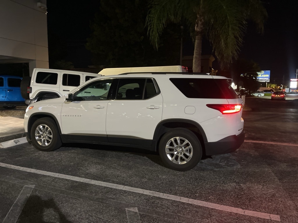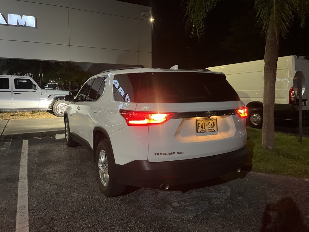 This Traverse is well equipped with Chevy Safety Assist (Automatic Emergency Braking, Automatic Heated Steering Wheel, Following Distance Indicator, Forward Collision Alert, Front Pedestrian Braking, IntelliBeam Auto High Beam Control Headlamps, and Lane Keep Assist w/Lane Departure Warning), Front License Plate Bracket Mounting Package, Preferred Equipment Group 1LT, AWD, 3.49 Axle Ratio, 3rd row seats: split-bench, 4-Wheel Disc Brakes, 6 Speakers, 7-Passenger Seating (2-2-3 Seating Configuration), ABS brakes, Air Conditioning, Alloy wheels, AM/FM radio: SiriusXM, Apple CarPlay/Android Auto, Automatic temperature control, Brake assist, Bumpers: body-color, Compass, Delay-off headlights, Driver door bin, Driver vanity mirror, Dual front impact airbags, Dual front side impact airbags, Electronic Stability Control, Emergency communication system: OnStar and Chevrolet connected services capable, Four wheel independent suspension, Front anti-roll bar, Front Bucket Seats, Front Center Armrest, Front dual zone A/C, Front fog lights, Front reading lights, Fully automatic headlights, Garage door transmitter, Heated door mirrors, Heated front seats, High-Intensity Discharge Headlights, Illuminated entry, Leather steering wheel, Low tire pressure warning, Occupant sensing airbag, Outside temperature display, Overhead airbag, Overhead console, Panic alarm, Passenger door bin, Passenger vanity mirror, Power door mirrors, Power driver seat, Power Liftgate, Power steering, Power windows, Premium Cloth Seat Trim, Radio data system, Radio: Chevrolet Infotainment 3 Plus System, Rear air conditioning, Rear anti-roll bar, Rear reading lights, Rear window defroster, Rear window wiper, Remote keyless entry, Roof rack: rails only, Security system, SiriusXM w/360L, Speed control, Speed-sensing steering, Spoiler, Steering wheel mounted audio controls, Tachometer, Telescoping steering wheel, Tilt steering wheel, Traction control, Trip computer, Turn signal indicator mirrors, Variably intermittent wipers, Voltmeter, and Wheels: 18" Bright Silver Painted Aluminum.