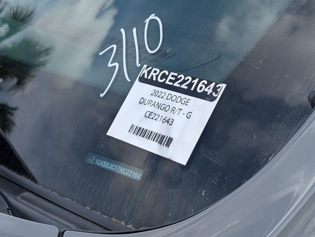 2022 Dodge Durango R/T Beautifully finished in Destroyer Gray Clearcoat with Black Leather interior. HEMI 5.7L V8 Multi Displacement VVT 4D Sport Utility AWD 8-Speed Automatic AWD, 3.09 Rear Axle Ratio, 3rd row seats: split-bench, 4-Wheel Disc Brakes, 9 Speakers, ABS brakes, Air Conditioning, Alloy wheels, AM/FM radio: SiriusXM w/360L, Anti-whiplash front head restraints, Apple CarPlay/Android Auto, Audio memory, Auto High-beam Headlights, Auto-dimming door mirrors, Auto-dimming Rear-View mirror, Auto-leveling suspension, Automatic temperature control, Brake assist, Bumpers: body-color, Compass, Delay-off headlights, Driver door bin, Driver vanity mirror, Dual front impact airbags, Dual front side impact airbags, Electronic Stability Control, Emergency communication system: SiriusXM Guardian, Four wheel independent suspension, Front anti-roll bar, Front Bucket Seats, Front Center Armrest w/Storage, Front dual zone A/C, Front fog lights, Front reading lights, Fully automatic headlights, Garage door transmitter, Heated door mirrors, Heated front seats, Heated rear seats, Heated steering wheel, Heavy-Duty Engine Cooling, Illuminated entry, Knee airbag, Leather steering wheel, Leather Suede Bucket Seats, Low tire pressure warning, Memory seat, Navigation system: TomTom, Occupant sensing airbag, Outside temperature display, Overhead airbag, Overhead console, Panic alarm, ParkView Rear Back-Up Camera, Passenger door bin, Passenger vanity mirror, Power door mirrors, Power driver seat, Power Liftgate, Power passenger seat, Power steering, Power Sunroof, Power windows, Quick Order Package 22S R/T, Radio data system, Radio: Uconnect 5 Nav w/10.1" Display, Rain sensing wipers, Rear air conditioning, Rear anti-roll bar, Rear Load Leveling Suspension, Rear reading lights, Rear seat center armrest, Rear window defroster, Rear window wiper, Remote keyless entry, Security system, Speed control, Speed-sensing steering, Speed-Sensitive Wipers, Split folding rear seat, Spoiler, Steering wheel mounted audio controls, Tachometer, Telescoping steering wheel, Tilt steering wheel, Traction control, Trip computer, Turn signal indicator mirrors, Variably intermittent wipers, Voltmeter, Wheels: 20" x 8.0" Fine Silver, AWD. Clean CARFAX.