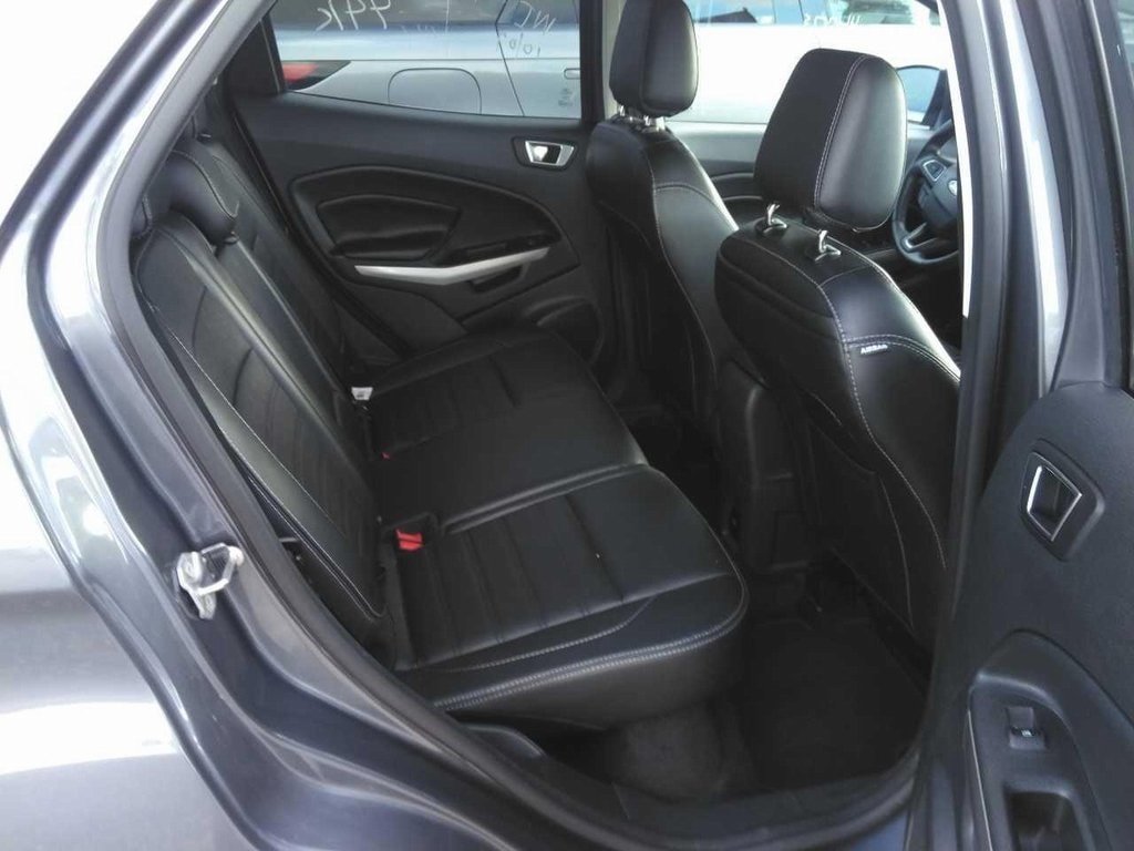 This EcoSport is well equipped with Equipment Group 400A, 10 Speakers, 3.44 Axle Ratio, 4-Wheel Disc Brakes, ABS brakes, ActiveX Seating Material Heated Front Bucket Seats, Air Conditioning, Alloy wheels, AM/FM radio: SiriusXM, Auto-dimming Rear-View mirror, Automatic temperature control, Brake assist, Bumpers: body-color, Compass, Delay-off headlights, Driver door bin, Driver vanity mirror, Dual front impact airbags, Dual front side impact airbags, Electronic Stability Control, Emergency communication system: SYNC 3 911 Assist, Exterior Parking Camera Rear, Front anti-roll bar, Front Bucket Seats, Front Center Armrest, Front fog lights, Front reading lights, Front wheel independent suspension, Fully automatic headlights, Heated door mirrors, Heated front seats, Heated steering wheel, Illuminated entry, Knee airbag, Leather Shift Knob, Leather steering wheel, Low tire pressure warning, Navigation System/ GPS, Occupant sensing airbag, Outside temperature display, Overhead airbag, Overhead console, Panic alarm, Passenger door bin, Passenger vanity mirror, Power door mirrors, Power driver seat, Power moonroof, Power steering, Power windows, Radio data system, Radio: AM/FM/MP3 Stereo, Rain sensing wipers, Rear Parking Sensors, Rear seat center armrest, Rear side impact airbag, Rear window defroster, Rear window wiper, Remote keyless entry, Roof rack: rails only, Security system, SiriusXM Radio, SiriusXM Traffic & Travel Link, Speed control, Speed-sensing steering, Split folding rear seat, Steering wheel mounted audio controls, SYNC 3 Communications & Entertainment System, Tachometer, Telescoping steering wheel, Tilt steering wheel, Traction control, Trip computer, Turn signal indicator mirrors, Variably intermittent wipers, and Wheels: 17" Premium Dark Stainless-Painted.