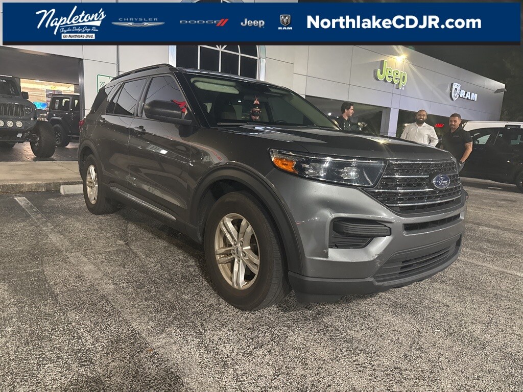This Explorer is well equipped with Equipment Group 200A, 3.58 Non-Limited-Slip Rear Axle Ratio, 3rd row seats: bench, 4-Wheel Disc Brakes, 4G LTE Wi-Fi Hotspot Credit, 6 Speakers, ABS brakes, Air Conditioning, Alloy wheels, AM/FM radio: SiriusXM, AM/FM Stereo, Auto High-beam Headlights, Automatic temperature control, Brake assist, Bumpers: body-color, Compass, Delay-off headlights, Driver door bin, Driver vanity mirror, Dual front impact airbags, Dual front side impact airbags, Electronic Stability Control, Emergency communication system: SYNC 3 911 Assist, Exterior Parking Camera Rear, FordPass Connect, Four wheel independent suspension, Front anti-roll bar, Front Bucket Seats, Front Center Armrest, Front dual zone A/C, Front reading lights, Fully automatic headlights, Heated door mirrors, Heated front seats, Heated Unique Cloth Captain's Chairs, Illuminated entry, Knee airbag, Leather steering wheel, Low tire pressure warning, Occupant sensing airbag, Outside temperature display, Overhead airbag, Overhead console, Panic alarm, Passenger door bin, Passenger vanity mirror, Power door mirrors, Power driver seat, Power Liftgate, Power passenger seat, Power steering, Power windows, Rear air conditioning, Rear anti-roll bar, Rear Auxiliary Controls Credit, Rear reading lights, Rear window defroster, Rear window wiper, Remote keyless entry, Roof rack: rails only, Security system, Speed control, Speed-sensing steering, Speed-Sensitive Wipers, Split folding rear seat, Spoiler, Steering wheel mounted audio controls, SYNC 3 Communications & Entertainment System, SYNC 3/Apple CarPlay/Android Auto, Tachometer, Telescoping steering wheel, Tilt steering wheel, Traction control, Trip computer, Variably intermittent wipers, and Wheels: 18" 5-Spoke Silver-Painted Aluminum.