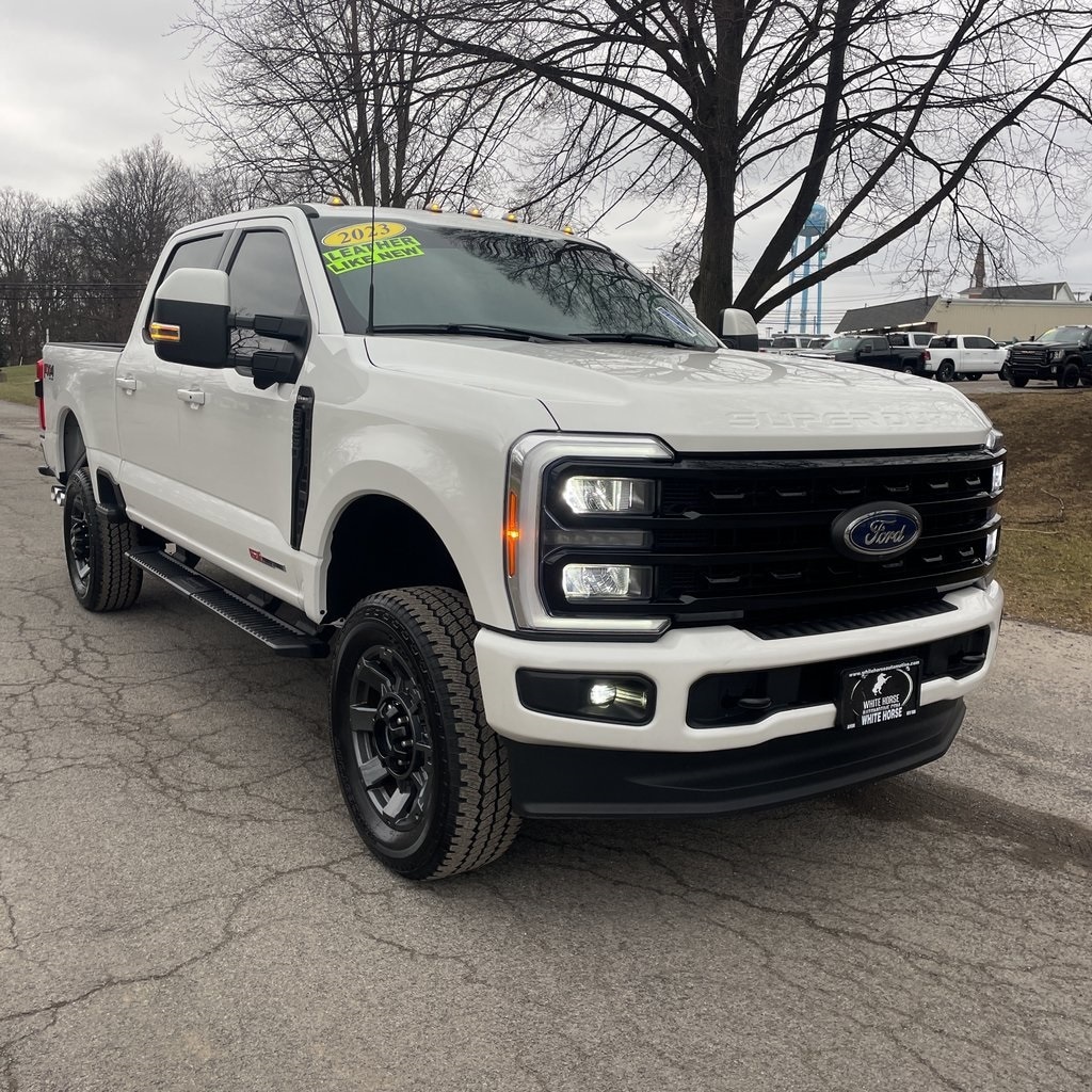 Recent Arrival! CARFAX One-Owner. Star White Metallic Tri-Coat 2023 Ford F-250SD Lariat Lariat 4WD Power Stroke 6.7L V8 DI 32V OHV Turbodiesel 4D Crew Cab Clean CARFAX.