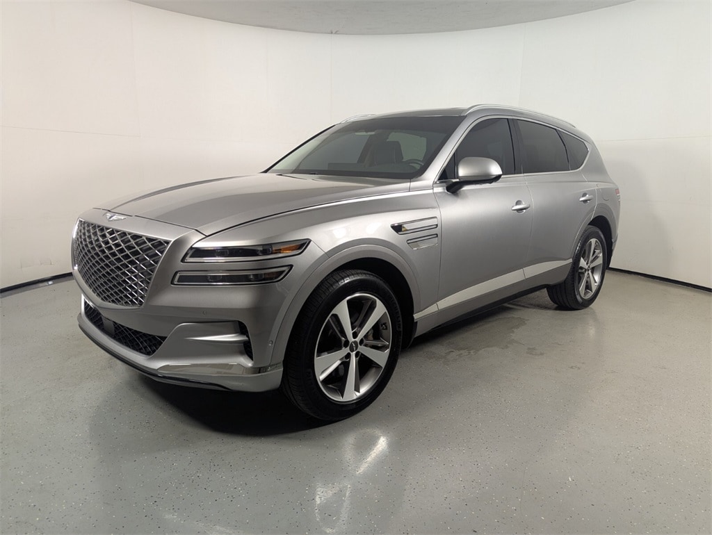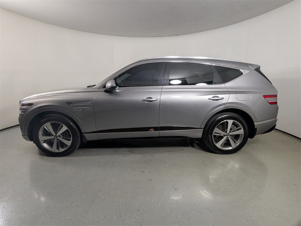 This GV80 is well equipped with 12 Speakers, 4-Wheel Disc Brakes, 4.363 Axle Ratio, ABS brakes, Air Conditioning, Alloy wheels, AM/FM radio: SiriusXM, Android Auto & Apple CarPlay, Anti-whiplash front head restraints, Auto High-beam Headlights, Auto tilt-away steering wheel, Auto-dimming door mirrors, Auto-dimming Rear-View mirror, Auto-leveling suspension, Automatic temperature control, Brake assist, Bumpers: body-color, Compass, Delay-off headlights, Driver door bin, Driver vanity mirror, Dual front impact airbags, Dual front side impact airbags, Electronic Stability Control, Emergency communication system: Genesis Connected Services, Exterior Parking Camera Rear, Four wheel independent suspension, Front anti-roll bar, Front Bucket Seats, Front Center Armrest, Front dual zone A/C, Front reading lights, Fully automatic headlights, Garage door transmitter: HomeLink, Heated door mirrors, Heated Front Bucket Seats, Heated front seats, Illuminated entry, Knee airbag, Leather steering wheel, Leatherette Seating Surfaces, Low tire pressure warning, Memory seat, Navigation System/ GPS, Occupant sensing airbag, Outside temperature display, Overhead airbag, Overhead console, Panic alarm, Passenger door bin, Passenger vanity mirror, Power door mirrors, Power driver seat, Power Liftgate, Power passenger seat, Power steering, Power windows, Radio data system, Radio: AM/FM/SiriusXM/HD Premium Audio System, Rain sensing wipers, Rear air conditioning, Rear anti-roll bar, Rear reading lights, Rear seat center armrest, Rear side impact airbag, Rear window defroster, Rear window wiper, Remote keyless entry, Security system, Speed control, Speed-sensing steering, Speed-Sensitive Wipers, Split folding rear seat, Spoiler, Steering wheel memory, Steering wheel mounted audio controls, Tachometer, Telescoping steering wheel, Tilt steering wheel, Traction control, Trip computer, Turn signal indicator mirrors, Variably intermittent wipers, and Wheels: 19" x 8.5J Alloy.