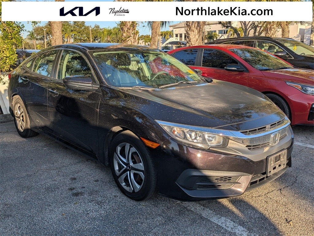 2016 Honda Civic LX Beautifully finished in Crystal Black Pearl with Black Cloth interior. 2.0L I4 DOHC 16V i-VTEC 4D Sedan FWD CVT Black Cloth, 16" Wheels w/Full Covers, 4 Speakers, 4-Wheel Disc Brakes, ABS brakes, Air Conditioning, AM/FM radio, Automatic temperature control, Brake assist, Bumpers: body-color, Cloth Seat Trim, Compass, Delay-off headlights, Driver door bin, Driver vanity mirror, Dual front impact airbags, Dual front side impact airbags, Electronic Stability Control, Exterior Parking Camera Rear, Four wheel independent suspension, Front anti-roll bar, Front Bucket Seats, Front Center Armrest, Front reading lights, Fully automatic headlights, Illuminated entry, Low tire pressure warning, Occupant sensing airbag, Outside temperature display, Overhead airbag, Panic alarm, Passenger door bin, Passenger vanity mirror, Power door mirrors, Power steering, Power windows, Radio data system, Radio: 160-Watt AM/FM Audio System, Rear anti-roll bar, Rear window defroster, Reclining Front Bucket Seats, Remote keyless entry, Security system, Speed control, Speed-sensing steering, Steering wheel mounted audio controls, Tachometer, Telescoping steering wheel, Tilt steering wheel, Traction control, Black Cloth. Priced below KBB Fair Purchase Price! 31/41 City/Highway MPG
