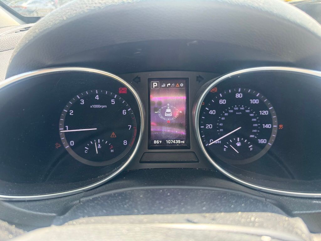 2017 Hyundai Santa Fe Sport 2.0T Ultimate Beautifully finished in Mineral Gray with Black Leather interior. 2.0L I4 DGI DOHC 16V Turbocharged 4D Sport Utility FWD 6-Speed Automatic with Shiftronic 12 Speakers, 4-Wheel Disc Brakes, ABS brakes, Air Conditioning, Alloy wheels, AM/FM radio: SiriusXM, Android Auto, Auto-dimming Rear-View mirror, Automatic temperature control, Axle Ratio 3.195, Brake assist, Bumper Applique, Bumpers: body-color, Carpeted Floor Mats, CD player, Compass, Delay-off headlights, Driver door bin, Driver vanity mirror, Dual front impact airbags, Dual front side impact airbags, Electronic Stability Control, Emergency communication system: Blue Link, Exterior Parking Camera Rear, Four wheel independent suspension, Front anti-roll bar, Front Bucket Seats, Front Center Armrest, Front dual zone A/C, Front fog lights, Front reading lights, Fully automatic headlights, Garage door transmitter: HomeLink, Heated & Ventilated Multi-Adjustable Bucket Seats, Heated door mirrors, Heated front seats, Heated rear seats, Heated steering wheel, High-Intensity Discharge Headlights, Illuminated entry, Knee airbag, Leather Seating Surface, Leather steering wheel, Low tire pressure warning, Memory seat, Navigation System, Occupant sensing airbag, Option Group 01, Outside temperature display, Overhead airbag, Overhead console, Panic alarm, Passenger door bin, Passenger vanity mirror, Power door mirrors, Power driver seat, Power Liftgate, Power moonroof, Power passenger seat, Power steering, Power windows, Radio: AM/FM/SiriusXM/CD/HD/MP3 Infinity Audio, Rear anti-roll bar, Rear Parking Sensors, Rear seat center armrest, Rear window defroster, Rear window wiper, Remote keyless entry, Roof rack: rails only, Security system, Speed control, Speed-sensing steering, Split folding rear seat, Spoiler, Steering wheel mounted audio controls, Tachometer, Telescoping steering wheel, Tilt steering wheel, Traction control, Trip computer, Turn signal indicator mirrors, Variably intermittent wipers, Ventilated front seats, Wheels: 19" x 7.5" Alloy. 20/27 City/Highway MPG