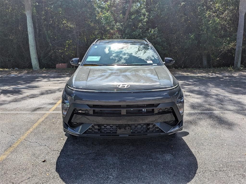 Features: Option Group 01, Kona N Line, 4D Sport Utility, I4, 8-Speed Automatic, AWD, Ecotronic Gray Pearl, Black Artificial Leather, 3.510 Axle Ratio, 4-Wheel Disc Brakes, 8 Speakers, ABS brakes, Air Conditioning, Alloy wheels, AM/FM radio: SiriusXM, Apple CarPlay & Android Auto, Auto High-beam Headlights, Auto-dimming Rear-View mirror, Automatic temperature control, Brake assist, Bumpers: body-color, Cargo Tray, Carpeted Floor Mats, Column-Mounted Shift-By-Wire, Delay-off headlights, Driver door bin, Driver vanity mirror, Dual front impact airbags, Dual front side impact airbags, Electronic Stability Control, Emergency communication system: Bluelink+, Exterior Parking Camera Rear, First Aid Kit, Four wheel independent suspension, Front anti-roll bar, Front Bucket Seats, Front Center Armrest, Front dual zone A/C, Front reading lights, Fully automatic headlights, Heated door mirrors, Heated front seats, Heated Front Sport Bucket Seats, Illuminated entry, Leather Shift Knob, Leather steering wheel, Low tire pressure warning, N-Line Alcantara Sport Combination Seat Trim, Navigation System, Occupant sensing airbag, Outside temperature display, Overhead airbag, Panic alarm, Passenger door bin, Passenger vanity mirror, Power door mirrors, Power driver seat, Power moonroof, Power steering, Power windows, Radio: AM/FM/HD Radio/SiriusXM Audio System, Rear anti-roll bar, Rear Bumper Applique, Rear seat center armrest, Rear window defroster, Rear window wiper, Remote keyless entry, Security system, Speed control, Speed-sensing steering, Split folding rear seat, Spoiler, Steering wheel mounted audio controls, Tachometer, Telescoping steering wheel, Tilt steering wheel, Traction control, Trip computer, Turn signal indicator mirrors, Variably intermittent wipers, Wheel Locks, and Wheels: 19" x 7.5J Metallic Alloy.