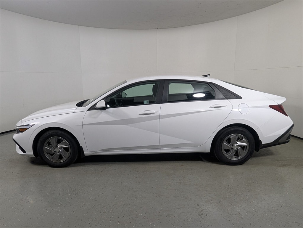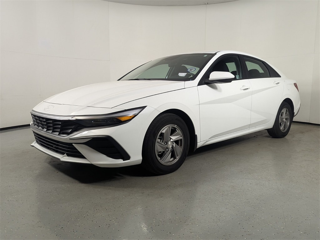 Features: Option Group 01, Elantra SE, 4D Sedan, I4, CVT, FWD, Serenity White, Black Cloth, 15" x 6.0J Alloy Wheels, 4-Wheel Disc Brakes, 6 Speakers, ABS brakes, Air Conditioning, Alloy wheels, AM/FM radio, Apple CarPlay & Android Auto, Auto High-beam Headlights, Brake assist, Bumpers: body-color, Cargo Net, Carpeted Floor Mats, Delay-off headlights, Driver door bin, Driver vanity mirror, Dual front impact airbags, Dual front side impact airbags, Electronic Stability Control, Exterior Parking Camera Rear, First Aid Kit, Front anti-roll bar, Front Bucket Seats, Front Center Armrest, Front reading lights, Front wheel independent suspension, Fully automatic headlights, Illuminated entry, Low tire pressure warning, Mudguards, Occupant sensing airbag, Outside temperature display, Overhead airbag, Overhead console, Panic alarm, Passenger door bin, Passenger vanity mirror, Power door mirrors, Power steering, Power windows, Premium Cloth Seat Trim, Radio: AM/FM/HD Display Audio, Rear side impact airbag, Rear window defroster, Remote keyless entry, Reversible Cargo Tray, Security system, Speed control, Speed-sensing steering, Steering wheel mounted audio controls, Tachometer, Telescoping steering wheel, Tilt steering wheel, Traction control, Trip computer, and Variably intermittent wipers.