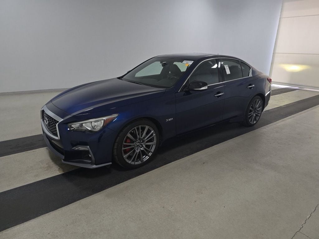 2019 INFINITI Q50 Red Sport 400 Beautifully finished in Iridium Blue with Graphite Leather interior. 3.0L V6 4D Sedan RWD 7-Speed Automatic with Overdrive **MUST SEE TO APPRECIATE**, **EXTRA CLEAN**, 4-Wheel Disc Brakes, 6 Speakers, ABS brakes, Adaptive suspension, Air Conditioning, Alloy wheels, AM/FM radio: SiriusXM, Anti-whiplash front head restraints, Auto-dimming Rear-View mirror, Automatic temperature control, Brake assist, Bumpers: body-color, CD player, Compass, Delay-off headlights, Driver door bin, Driver vanity mirror, Dual front impact airbags, Dual front side impact airbags, Electronic Stability Control, Emergency communication system: INFINITI Connection, Four wheel independent suspension, Front anti-roll bar, Front Bucket Seats, Front Center Armrest, Front dual zone A/C, Front fog lights, Front reading lights, Fully automatic headlights, Garage door transmitter: HomeLink, Heated door mirrors, Heated front seats, Heated Front Sport Seats, Heated steering wheel, Illuminated entry, Leather Shift Knob, Leather steering wheel, Literature Kit, Low tire pressure warning, Navigation system: INFINITI InTouch Navigation, Occupant sensing airbag, Outside temperature display, Overhead airbag, Overhead console, Panic alarm, Passenger door bin, Passenger vanity mirror, Power door mirrors, Power driver seat, Power moonroof, Power passenger seat, Power steering, Power windows, Quilted Semi-Aniline Leather Seating Surfaces, Radio data system, Radio: INFINITI InTouch Navigation, Rain sensing wipers, Rear anti-roll bar, Rear reading lights, Rear seat center armrest, Rear window defroster, Remote keyless entry, Security system, Speed control, Speed-sensing steering, Speed-Sensitive Wipers, Split folding rear seat, Steering wheel mounted audio controls, Tachometer, Telescoping steering wheel, Tilt steering wheel, Traction control, Trip computer, Turn signal indicator mirrors, Variably intermittent wipers, Wheels: 19" x 9" FR & 19" x 9.5" RR Alum-Alloy. Priced below KBB Fair Purchase Price! 20/26 City/Highway MPG