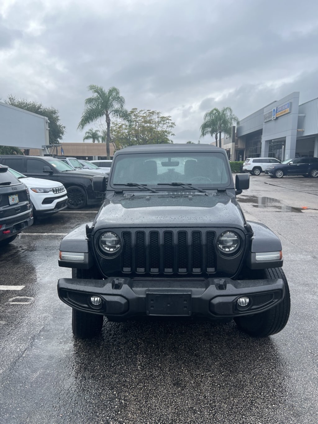 This Wrangler is well equipped with 8.4" Radio & Premium Audio Group (1-Year SiriusXM Guardian Trial, 4G LTE Wi-Fi Hot Spot, 5-Year SiriusXM Traffic Service, 5-Year SiriusXM Travel Link Service, 8.4" Touchscreen Display, Alpine Premium Audio System, Auto-Dimming Rear-View Mirror, Emergency/Assistance Call, For Details, Visit DriveUconnect.com, GPS Navigation, HD Radio, Radio: Uconnect 4C Nav w/8.4" Display, SiriusXM Traffic Plus, and SiriusXM Travel Link), Altitude Package, Cold Weather Group (Heated Front Seats and Heated Steering Wheel), Dual Top Group (Freedom Panel Storage Bag, Premium Black Sunrider Soft Top w/Dual Top Group, Rear Window Defroster, and Rear Window Wiper/Washer), LED Lighting Group (Daytime Running Lamps LED Accents, Front LED Fog Lamps, LED Premium Reflector Headlamps, and LED Taillamps), Quick Order Package 22L Altitude (Black Interior Accents, Black Trail Rated Badge, Body Color 3-Piece Hard Top, Body Color Grille w/Gloss Black Rings, Leather Trimmed Bucket Seats, Leather Wrapped Park Brake Handle, Leather Wrapped Shift Knob, Matte Black Jeep Badge, Mold In Color Bumper w/Gloss Black, MOPAR Hardtop Headliner, Wheels: 18" x 7.5" Gloss Black Aluminum, and Wizard Black Instrument Panel Bezels), Safety Group (Blind Spot & Cross Path Detection and ParkSense Rear Park Assist System), 3.45 Rear Axle Ratio, 4-Wheel Disc Brakes, 8 Speakers, ABS brakes, Air Conditioning, Alloy wheels, AM/FM radio: SiriusXM, Apple CarPlay, Apple CarPlay/Android Auto, Automatic temperature control, Aux Battery, Brake assist, Cloth Low-Back Bucket Seats, Compass, Delay-off headlights, Driver door bin, Driver vanity mirror, Dual front impact airbags, Dual front side impact airbags, Electronic Stability Control, Front anti-roll bar, Front Bucket Seats, Front Center Armrest w/Storage, Front dual zone A/C, Front fog lights, Front License Plate Bracket, Front reading lights, Fully automatic headlights, Garage door transmitter, Google Android Auto, GPS Antenna Input, Heated door mirrors, Heavy Duty Suspension w/Gas Shocks, Illuminated entry, Integrated roll-over protection, Integrated Voice Command w/Bluetooth, Leather steering wheel, Low tire pressure warning, MOPAR All-Weather Floor Mats (DISC), Non-Lock Fuel Cap w/o Discriminator, Occupant sensing airbag, Outside temperature display, Panic alarm, ParkView Rear Back-Up Camera, Passenger door bin, Passenger vanity mirror, Power door mirrors, Power steering, Power windows, Radio data system, Radio: Uconnect 4 w/7" Display, Rear anti-roll bar, Rear reading lights, Remote keyless entry, Remote Start System, Security system, Speed control, Split folding rear seat, Steering wheel mounted audio controls, Stop-Start Dual Battery System, Tachometer, Telescoping steering wheel, Tilt steering wheel, Traction control, Trip computer, Variably intermittent wipers, Voltmeter, and Wheels: 18" x 7.5" Polished w/Gray Spokes.