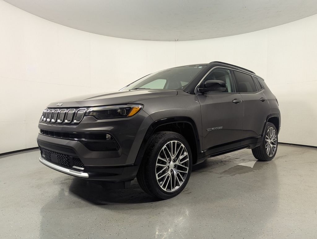 2022 Jeep Compass Limited Beautifully finished in Granite Crystal Metallic Clearcoat with Black Leather interior. 2.4L I4 4D Sport Utility 4WD 9-Speed 948TE Automatic 4WD, 10.1" Touchscreen Display, 115V Auxiliary Power Outlet, 2nd Row Heated Seats, 2nd Row USB Type A/C Charge Only, 3.73 Axle Ratio, 4-Wheel Disc Brakes, 4G LTE Wi-Fi Hot Spot, 6 Speakers, ABS brakes, Air Conditioning, Alexa Built-In, Alloy wheels, AM/FM radio: SiriusXM, Anti-whiplash front head restraints, Auto High-beam Headlights, Auto-dimming Rear-View mirror, Automatic temperature control, Brake assist, Bumpers: body-color, Cluster 10.25" TFT Color Display, Compass, Connected Travel & Traffic Services, Delay-off headlights, Disassociated Touchscreen Display, Driver door bin, Driver Seat Memory, Driver vanity mirror, Dual front impact airbags, Dual front side impact airbags, Electronic Stability Control, Elite Group, Emergency communication system: SiriusXM Guardian, Foot Activated Open 'N Go Liftgate, For Details, Visit DriveUconnect.com, For More Info, Call 800-643-2112, Four wheel independent suspension, Front anti-roll bar, Front Bucket Seats, Front Center Armrest w/Storage, Front dual zone A/C, Front fog lights, Front reading lights, Fully automatic headlights, Global Telematics Box Module (TBM), Gloss Black Door Cladding, Gloss Black Exterior Mirrors, Gloss Black Exterior Sill, Gloss Black Fascias, Gloss Black Wheel Flares, GPS Navigation, HD Radio, Heated door mirrors, Heated front seats, Heated steering wheel, Illuminated entry, Integrated Voice Command w/Bluetooth, Knee airbag, Leather Shift Knob, Leather Trimmed Bucket Seats, LED Low/Highbeam Projector Headlamps, Low tire pressure warning, No Satellite Coverage HI/AK/PR/VI/GU, Occupant sensing airbag, Outside temperature display, Overhead airbag, Overhead console, Panic alarm, ParkView Rear Back-Up Camera, Passenger door bin, Passenger vanity mirror, Power 2-Way Passenger Lumbar Adjust, Power 8-Way Adjust Front Passenger Seat, Power door mirrors, Power driver seat, Power Front/Fixed Rear Full Sunroof, Power Liftgate, Power steering, Power windows, Premium Alpine Speaker System, Premium Leather Trimmed Bucket Seats, Premium LED Fog Lamps, Premium Taillamps, Quick Order Package 2GG, Radio: Uconnect 5 Nav w/10.1" Display, Radio: Uconnect 5 w/10.1" Display, Rain sensing wipers, Rear anti-roll bar, Rear seat center armrest, Rear window defroster, Rear window wiper, Remote keyless entry, Reversible Carpet/Vinyl Cargo Mat, Roof rack: rails only, Security system, SiriusXM Guardian - Included Trial (B), SiriusXM Radio Service, SiriusXM Satellite Radio, SiriusXM w/360L, Speed control, Split folding rear seat, Spoiler, Steering wheel mounted audio controls, Sun and Sound Group, Tachometer, Telescoping steering wheel, Tilt steering wheel, Traction control, Trip computer, Turn signal indicator mirrors, Variably intermittent wipers, Ventilated Front Seats, Wheels: 18" x 7" Painted Diamond Cut Aluminum, Wheels: 19" x 7.5" Painted Diamond Cut Aluminum, 4WD. CARFAX One-Owner. Clean CARFAX. Priced below KBB Fair Purchase Price! 22/30 City/Highway MPG