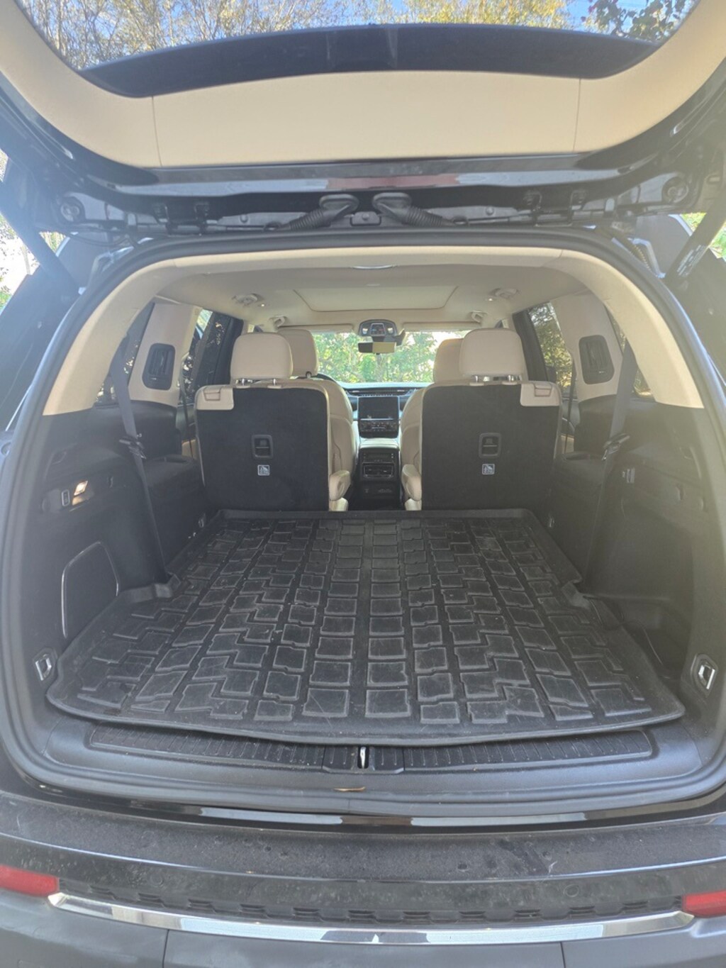 This Grand Cherokee L is well equipped with Luxury Tech Group II (2nd Row Manual Window Shades, Auto-Dimming Exterior Driver Mirror, Capri Leather Seats w/Perforated Inserts, Integrated Off-Road Camera, Intersection Collision Assist System, Memory Steering Column, ParkSense Front/Rear Park Assist w/Stop, Passive Entry - Front/Rear Doors, Liftgate, Power Tilt/Telescope Steering Column, Rain Sensitive Windshield Wipers, Rear Back Up Camera Washer, Rearview Autodim Digital Display Mirror, Surround View Camera System, Ventilated Front Seats, and Wireless Charging Pad), Quick Order Package 22E, 10.1" Touchscreen Display, 3.45 Rear Axle Ratio, 3rd row seats: split-bench, 4-Wheel Disc Brakes, 4G LTE Wi-Fi Hot Spot, 506 Watt Amplifier, 6 Speakers, 9 Amplified Speakers w/Subwoofer, ABS brakes, Active Noise Control System, Air Conditioning, All Radio Equipped Vehicles, Alloy wheels, AM/FM radio: SiriusXM with 360L, Anti-whiplash front head restraints, Apple CarPlay, Audio memory, Auto High-beam Headlights, Automatic temperature control, Brake assist, Bumpers: body-color, Capri Leather Seats, Compass, Connected Travel & Traffic Services, Connectivity - US/Canada, Delay-off headlights, Disassociated Touchscreen Display, Driver door bin, Driver vanity mirror, Dual front impact airbags, Dual front side impact airbags, Dual-Pane Panoramic Sunroof, Electronic Stability Control, Emergency communication system, For Details, Visit DriveUconnect.com, For More Info, Call 800-643-2112, Four wheel independent suspension, Front anti-roll bar, Front Bucket Seats, Front Center Armrest w/Storage, Front dual zone A/C, Front fog lights, Front reading lights, Fully automatic headlights, Garage door transmitter, Global Telematics Box Module (TBM), Google Android Auto, GPS Antenna Input, GPS Navigation, HD Radio, Heated door mirrors, Heated front seats, Heated rear seats, Heated steering wheel, Illuminated entry, Integrated Center Stack Radio, Integrated Voice Command w/Bluetooth, Interior Rear Facing Camera, Knee airbag, Leather steering wheel, Low tire pressure warning, Manual Fold Seatbacks, Memory seat, Normal Duty Suspension, Occupant sensing airbag, Outside temperature display, Overhead airbag, Overhead console, Panic alarm, ParkView Rear Back-Up Camera, Passenger door bin, Passenger vanity mirror, Power door mirrors, Power driver seat, Power Liftgate, Power passenger seat, Power steering, Power windows, Radio data system, Radio: Uconnect 5 Nav w/10.1" Display, Radio: Uconnect 5 w/8.4" Display, Rear air conditioning, Rear anti-roll bar, Rear reading lights, Rear window defroster, Rear window wiper, Reclining 3rd row seat, Remote keyless entry, Security system, SiriusXM Radio Service, SiriusXM Satellite Radio, SiriusXM w/360L, Speed control, Speed-Sensitive Wipers, Split folding rear seat, Spoiler, Steering wheel mounted audio controls, Tachometer, Telescoping steering wheel, Tilt steering wheel, Traction control, Trip computer, Turn signal indicator mirrors, USB Host Flip, Variably intermittent wipers, Voltmeter, Wheels: 18" x 8.0" Fully Painted Aluminum 2, and Wheels: 20" x 8.5" Polished/Painted Aluminum.