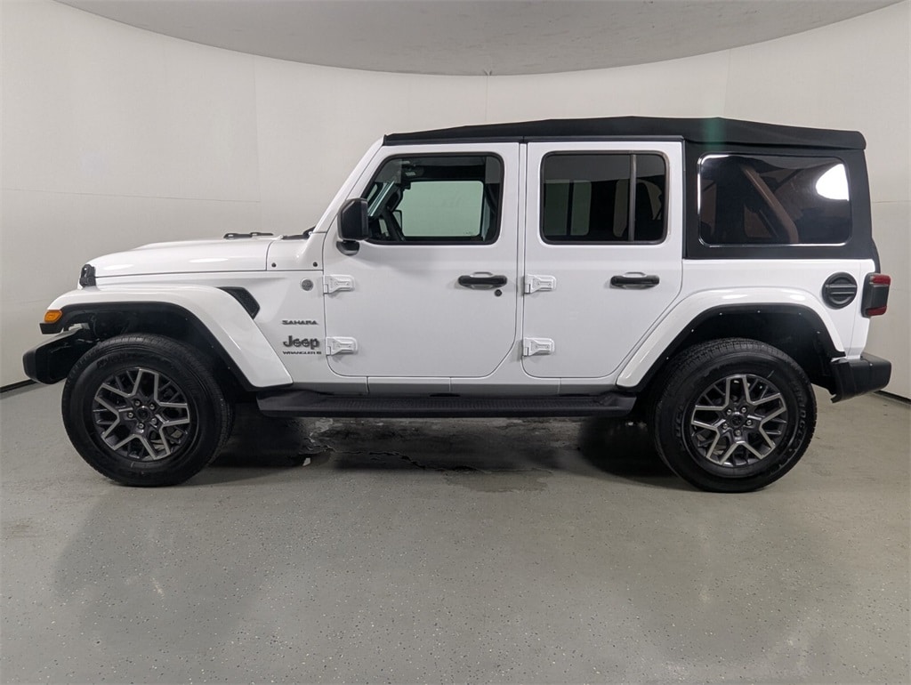 This Wrangler is well equipped with Quick Order Package 24G Sahara, Safety Group (Auto High Beam Headlamp Control, Blind Spot & Cross Path Detection, and ParkSense Rear Park Assist System), 110 MPH Vehicle Max Speed Calibration, 12.3" Touchscreen Display, 4-Wheel Disc Brakes, 8 Speakers, ABS brakes, Air Conditioning, Alloy wheels, AM/FM radio: SiriusXM, Apple CarPlay, Apple CarPlay/Android Auto, Automatic temperature control, Aux Battery, Brake assist, Cloth Low-Back Bucket Seats, Compass, Connectivity - US/Canada, Delay-off headlights, Disassociated Touchscreen Display, Driver door bin, Driver vanity mirror, Dual front impact airbags, Dual front side impact airbags, Electronic Stability Control, Emergency communication system: Jeep Connect, Front anti-roll bar, Front Bucket Seats, Front Center Armrest w/Storage, Front dual zone A/C, Front fog lights, Front reading lights, Fully automatic headlights, Google Android Auto, Heated door mirrors, Heated front seats, Heated steering wheel, Heavy Duty Suspension w/Gas Shocks, Illuminated entry, Integrated Center Stack Radio, Integrated roll-over protection, Integrated Voice Command w/Bluetooth, Low tire pressure warning, MOPAR All-Weather Floor Mats, Non-Lock Fuel Cap w/o Discriminator, Occupant sensing airbag, Outside temperature display, Overhead airbag, Panic alarm, ParkView Rear Back-Up Camera, Passenger door bin, Passenger vanity mirror, Power door mirrors, Power steering, Power windows, Radio data system, Radio: Uconnect 5 w/12.3" Display, Rear anti-roll bar, Rear reading lights, Remote keyless entry, Security system, Side Steps, Speed control, Split folding rear seat, Steering wheel mounted audio controls, Stop-Start Dual Battery System, Tachometer, Telescoping steering wheel, Tilt steering wheel, Traction control, Trip computer, Variably intermittent wipers, Voltmeter, and Wheels: 18" x 7.5" Machine/Painted Gray.