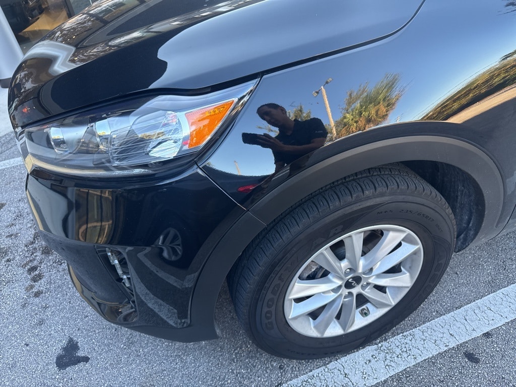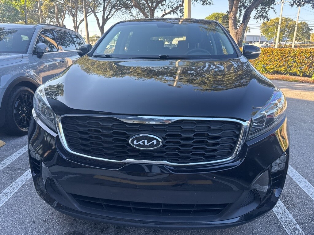 2019 Kia Sorento LX Beautifully finished in Ebony Black with Satin Black Cloth interior. I4 4D Sport Utility AWD 6-Speed Automatic with Sportmatic AWD, 17" x 7.0" Alloy Wheels, 3.648 Axle Ratio, 3rd row seats: split-bench, 4-Wheel Disc Brakes, 6 Speakers, ABS brakes, Air Conditioning, Alloy wheels, AM/FM radio, Apple CarPlay & Android Auto, Brake assist, Bumpers: body-color, Cargo Net (Envelope), Carpeted Floor Mats (7-Passenger), Delay-off headlights, Driver door bin, Driver vanity mirror, Dual front impact airbags, Dual front side impact airbags, Electronic Stability Control, Exterior Parking Camera Rear, Four wheel independent suspension, Front anti-roll bar, Front Bucket Seats, Front Center Armrest, Front reading lights, Fully automatic headlights, Heated door mirrors, Illuminated entry, Low tire pressure warning, Occupant sensing airbag, Outside temperature display, Overhead airbag, Overhead console, Panic alarm, Passenger door bin, Passenger vanity mirror, Power door mirrors, Power steering, Power windows, Radio data system, Radio: UVO Play w/AM/FM/MP3, Rear anti-roll bar, Rear seat center armrest, Rear window defroster, Rear window wiper, Remote keyless entry, Roof rack: rails only, Security system, Speed control, Speed-sensing steering, Split folding rear seat, Spoiler, Steering wheel mounted audio controls, Tachometer, Telescoping steering wheel, Tilt steering wheel, Traction control, Trip computer, Turn signal indicator mirrors, Variably intermittent wipers, Wheel Locks, YES Essentials Cloth Seat Trim, AWD. 21/26 City/Highway MPG