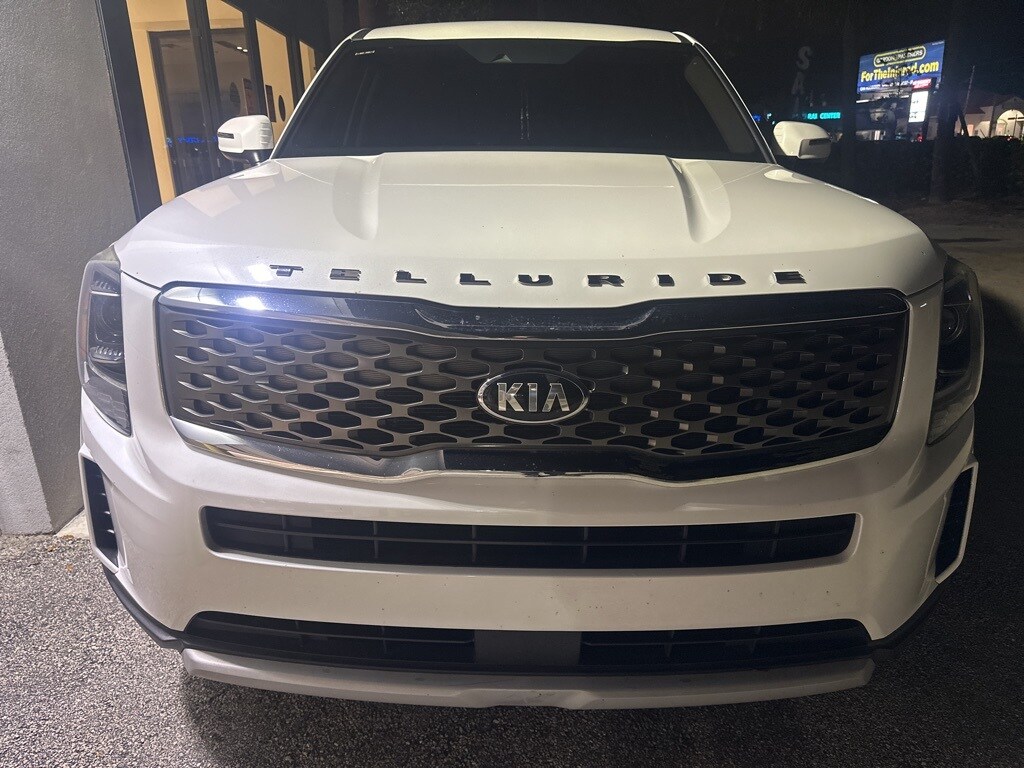 2020 Kia Telluride LX Beautifully finished in Snow White Pearl with Black Artificial Leather interior. 3.8L V6 DGI DOHC Dual CVVT 4D Sport Utility FWD 8-Speed Automatic 3.648 Axle Ratio, 3rd row seats: split-bench, 4-Wheel Disc Brakes, 6 Speakers, ABS brakes, Air Conditioning, Alloy wheels, AM/FM radio: SiriusXM, Apple CarPlay & Android Auto, Brake assist, Bumpers: body-color, Carpeted Floor Mats, Delay-off headlights, Driver door bin, Driver vanity mirror, Dual front impact airbags, Dual front side impact airbags, Electronic Stability Control, Emergency communication system: 911 Connect, Four wheel independent suspension, Front anti-roll bar, Front Bucket Seats, Front Center Armrest, Front reading lights, Fully automatic headlights, Heated door mirrors, Illuminated entry, Knee airbag, Leather steering wheel, Low tire pressure warning, Occupant sensing airbag, Outside temperature display, Overhead airbag, Overhead console, Panic alarm, Passenger door bin, Passenger vanity mirror, Power door mirrors, Power steering, Power windows, Radio data system, Radio: AM/FM/MP3/SiriusXM Audio System, Rear air conditioning, Rear anti-roll bar, Rear reading lights, Rear seat center armrest, Rear window defroster, Rear window wiper, Reclining 3rd row seat, Remote keyless entry, Security system, SOFINO Artificial Leather Upholstery, Speed control, Speed-sensing steering, Split folding rear seat, Spoiler, Steering wheel mounted audio controls, Tachometer, Telescoping steering wheel, Tilt steering wheel, Traction control, Trip computer, Turn signal indicator mirrors, Variably intermittent wipers, Wheels: 7.5" x 18" Painted Alloy. 20/26 City/Highway MPG