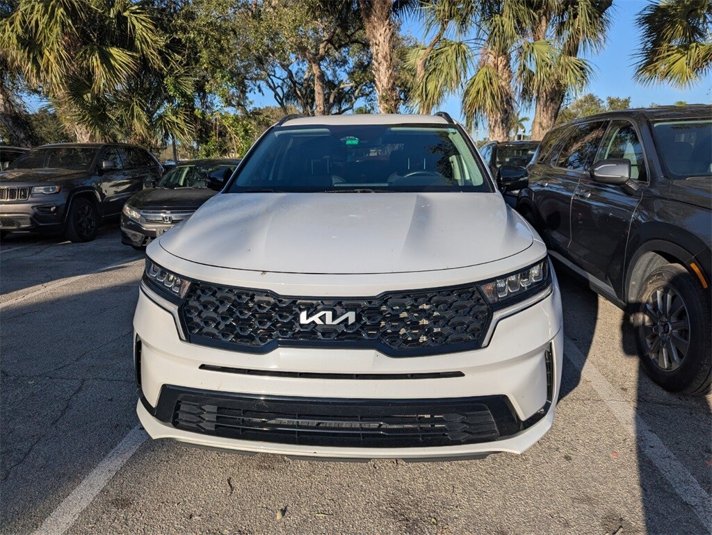 2022 Kia Sorento S Beautifully finished in Glacial White Pearl with Black Artificial Leather interior. 2.5L I4 DGI DOHC 16V LEV3-ULEV70 191hp 4D Sport Utility FWD 8-Speed Automatic 3.798 Axle Ratio, 3rd row seats: split-bench, 4-Wheel Disc Brakes, 6 Speakers, ABS brakes, Air Conditioning, Alloy wheels, AM/FM radio: SiriusXM, Apple CarPlay & Android Auto, Auto High-beam Headlights, Automatic temperature control, Brake assist, Bumper Applique Texture, Bumpers: body-color, Carpeted Floor Mats, Delay-off headlights, Driver door bin, Driver vanity mirror, Dual front impact airbags, Dual front side impact airbags, EC Mirror w/HomeLink, Electronic Stability Control, Emergency communication system: UVO Link, Exterior Parking Camera Rear, Four wheel independent suspension, Front anti-roll bar, Front Bucket Seats, Front Center Armrest, Front dual zone A/C, Front reading lights, Fully automatic headlights, Heated door mirrors, Heated Front Bucket Seats, Heated front seats, Illuminated entry, Knee airbag, Leather Shift Knob, Leather steering wheel, Low tire pressure warning, Navigation System, Occupant sensing airbag, Outside temperature display, Overhead airbag, Overhead console, Panic alarm, Passenger door bin, Passenger vanity mirror, Power door mirrors, Power driver seat, Power steering, Power windows, Radio data system, Radio: AM/FM Audio System, Rear air conditioning, Rear anti-roll bar, Rear reading lights, Rear seat center armrest, Rear window defroster, Rear window wiper, Remote keyless entry, Roof rack: rails only, Security system, Smart Key w/ Push Button and Remote Start, Speed control, Speed-sensing steering, Split folding rear seat, Spoiler, Steering wheel mounted audio controls, SynTex Artificial Leather Seat Trim, Tachometer, Telescoping steering wheel, Tilt steering wheel, Traction control, Trip computer, Turn signal indicator mirrors, Variably intermittent wipers, Wheels: 7.5J x 18" Machine-Finished Alloy. Clean CARFAX. New Price! 24/29 City/Highway MPG