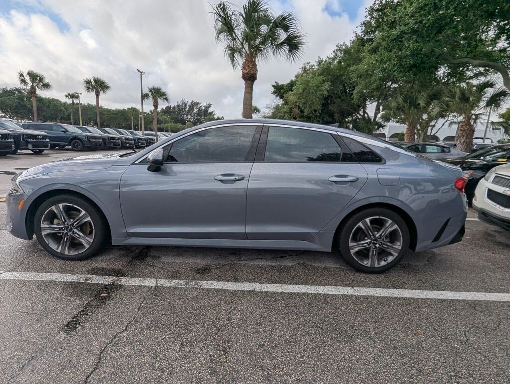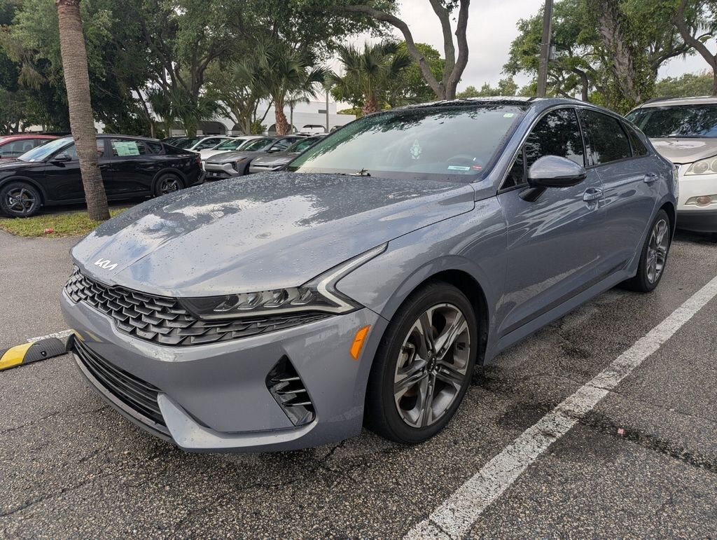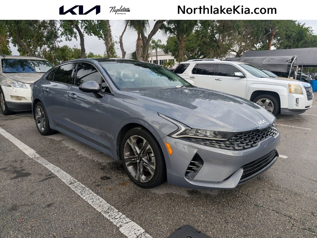 2023 Kia K5 EX Beautifully finished in Everlasting Silver with Black interior. 1.6L I4 DGI Turbocharged DOHC 16V LEV3-ULEV70 180hp 4D Sedan FWD 8-Speed Automatic **ONE OWNER**, **LOCAL TRADE**, **CLEAN CARFAX**, **MUST SEE TO APPRECIATE**, **EXTRA CLEAN**, 4-Wheel Disc Brakes, 6 Speakers, ABS brakes, Air Conditioning, Alloy wheels, AM/FM radio: SiriusXM, Apple CarPlay & Android Auto, Auto High-beam Headlights, Automatic temperature control, Brake assist, Bumpers: body-color, Cargo Net, Cargo Tray, Carpeted Floor Mats, Delay-off headlights, Driver door bin, Driver vanity mirror, Dual front impact airbags, Dual front side impact airbags, Electronic Stability Control, Emergency communication system, Four wheel independent suspension, Front anti-roll bar, Front Bucket Seats, Front Center Armrest, Front dual zone A/C, Front reading lights, Fully automatic headlights, Heated & Ventilated Front Bucket Seats, Heated door mirrors, Heated front seats, Illuminated entry, Knee airbag, Low tire pressure warning, Navigation System, Occupant sensing airbag, Outside temperature display, Overhead airbag, Overhead console, Panic alarm, Passenger door bin, Passenger vanity mirror, Power door mirrors, Power driver seat, Power moonroof, Power steering, Power windows, Radio data system, Radio: AM/FM/MP3 Audio System, Rear anti-roll bar, Rear reading lights, Rear seat center armrest, Rear side impact airbag, Rear window defroster, Remote keyless entry, Security system, Smart Key w/ Push Button and Remote Start, Speed control, Speed-sensing steering, Split folding rear seat, Steering wheel mounted audio controls, SynTex Seat Trim, Tachometer, Telescoping steering wheel, Tilt steering wheel, Traction control, Trip computer, Variably intermittent wipers, Ventilated front seats, Wheels: 18" Gray Machined Finish Alloy. CARFAX One-Owner. 27/37 City/Highway MPG