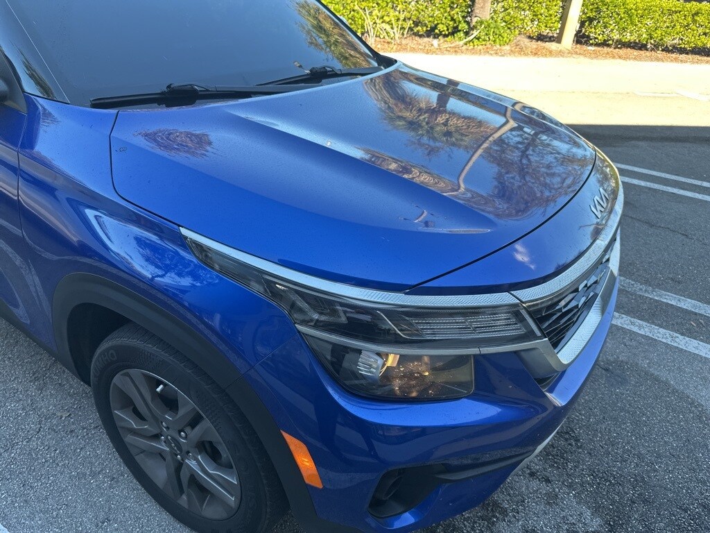 2023 Kia Seltos S Beautifully finished in Neptune Blue with Black Cloth interior. 2.0L I4 MPI 4D Sport Utility FWD CVT 4-Wheel Disc Brakes, 6 Speakers, 6.052 Axle Ratio, ABS brakes, Air Conditioning, Alloy wheels, AM/FM radio, Apple CarPlay & Android Auto, Auto High-beam Headlights, Automatic temperature control, Brake assist, Bumpers: body-color, Cargo Mat, Cargo Net (Floor), Carpet Floor Mats, Cloth & Sofino Premium Leatherette Seat Trim, Delay-off headlights, Driver door bin, Driver vanity mirror, Dual front impact airbags, Dual front side impact airbags, Electronic Stability Control, Emergency communication system: 911 Connect, Exterior Parking Camera Rear, Front anti-roll bar, Front Bucket Seats, Front Center Armrest, Front fog lights, Front reading lights, Front wheel independent suspension, Fully automatic headlights, Heated door mirrors, Illuminated entry, Leather Shift Knob, Low tire pressure warning, Occupant sensing airbag, Outside temperature display, Overhead airbag, Overhead console, Panic alarm, Passenger door bin, Passenger vanity mirror, Power door mirrors, Power steering, Power windows, Radio: AM/FM/MP3 Display Audio, Rear seat center armrest, Rear window defroster, Rear window wiper, Remote keyless entry, Security system, Speed control, Speed-sensing steering, Split folding rear seat, Spoiler, Steering wheel mounted audio controls, Tachometer, Telescoping steering wheel, Tilt steering wheel, Traction control, Trip computer, Turn signal indicator mirrors, Variably intermittent wipers, Wheel Locks, Wheels: 17" Alloy w/Dark Gray Finish. Clean CARFAX. 29/35 City/Highway MPG