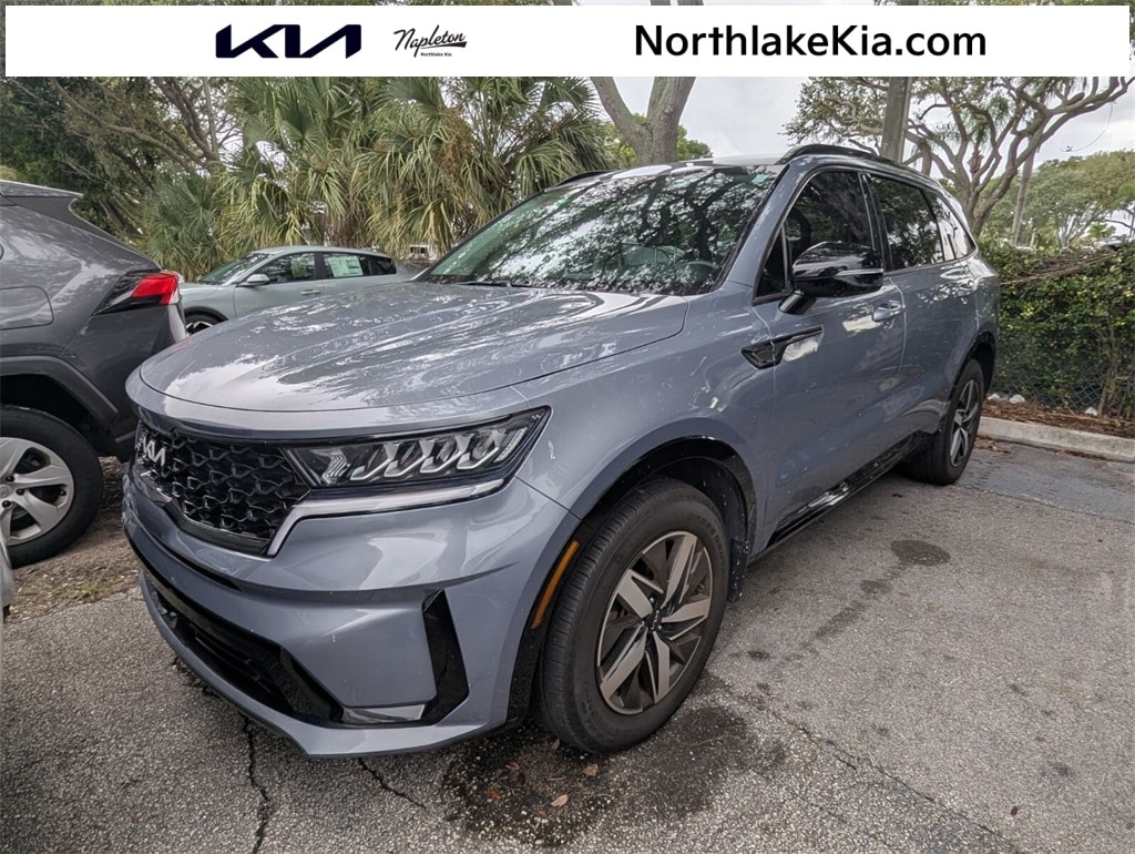 2023 Kia Sorento S Beautifully finished in Everlasting Silver with Black Artificial Leather interior. 2.5L I4 DGI DOHC 16V LEV3-ULEV70 191hp 4D Sport Utility FWD 8-Speed Automatic 3.798 Axle Ratio, 3rd row seats: split-bench, 4-Wheel Disc Brakes, 6 Speakers, ABS brakes, Air Conditioning, Alloy wheels, AM/FM radio: SiriusXM, Apple CarPlay & Android Auto, Auto High-beam Headlights, Automatic temperature control, Brake assist, Bumpers: body-color, Cargo Cover, Carpet Floor Mats, Cross Bars, Delay-off headlights, Driver door bin, Driver vanity mirror, Dual front impact airbags, Dual front side impact airbags, EC Mirror w/HomeLink, Electronic Stability Control, Emergency communication system, Exterior Parking Camera Rear, Four wheel independent suspension, Front anti-roll bar, Front Bucket Seats, Front Center Armrest, Front dual zone A/C, Front reading lights, Fully automatic headlights, Heated door mirrors, Heated Front Bucket Seats, Heated front seats, Illuminated entry, Illuminated Scuff Plates, Interior Lighting Kit, Knee airbag, Leather Shift Knob, Leather steering wheel, Low tire pressure warning, Navigation System, Occupant sensing airbag, Outside temperature display, Overhead airbag, Overhead console, Panic alarm, Passenger door bin, Passenger vanity mirror, Power door mirrors, Power driver seat, Power steering, Power windows, Radio data system, Radio: AM/FM Audio System, Rear air conditioning, Rear anti-roll bar, Rear reading lights, Rear seat center armrest, Rear window defroster, Rear window wiper, Remote keyless entry, Roof rack: rails only, Security system, Smart Key w/ Push Button and Remote Start, Speed control, Speed-sensing steering, Split folding rear seat, Spoiler, Steering wheel mounted audio controls, SynTex Artificial Leather Seat Trim, Tachometer, Telescoping steering wheel, Tilt steering wheel, Traction control, Trip computer, Turn signal indicator mirrors, Variably intermittent wipers, Wheels: 7.5J x 18" Machine-Finished Alloy. Priced below KBB Fair Purchase Price! 24/29 City/Highway MPG