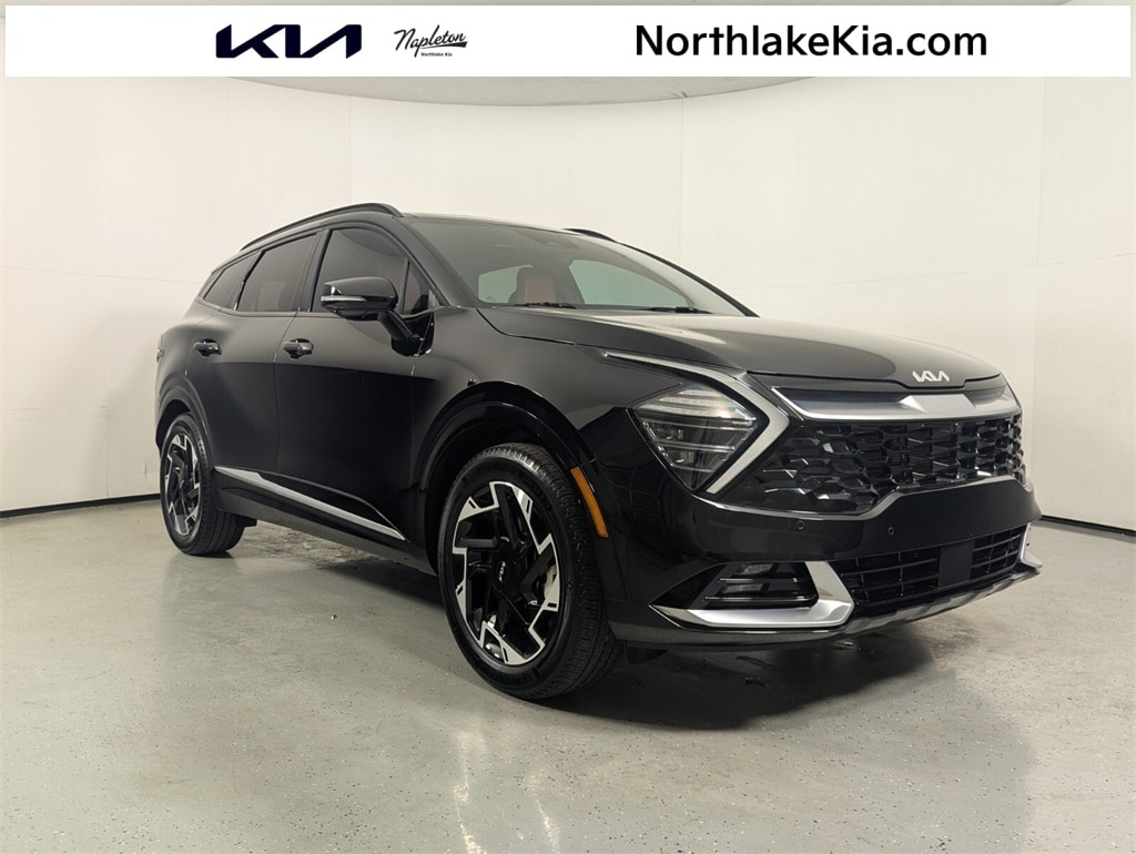 2023 Kia Sportage SX-Prestige Beautifully finished in Ebony Black with Black Artificial Leather interior. I4 4D Sport Utility FWD 8-Speed Automatic **ONE OWNER**, **LOCAL TRADE**, **CLEAN CARFAX**, 4-Wheel Disc Brakes, 8 Speakers, ABS brakes, Air Conditioning, Alloy wheels, AM/FM radio: SiriusXM, Apple CarPlay & Android Auto, Auto High-beam Headlights, Auto-dimming Rear-View mirror, Automatic temperature control, Axle Ratio: 3.648, Brake assist, Bumpers: body-color, Carmine Red Interior Color Package, Carpeted Floor Mats, Compass, Delay-off headlights, Driver door bin, Driver vanity mirror, Dual front impact airbags, Dual front side impact airbags, EC Mirror w/HomeLink, Electronic Stability Control, Emergency communication system, Four wheel independent suspension, Front anti-roll bar, Front Bucket Seats, Front Center Armrest, Front dual zone A/C, Front fog lights, Front reading lights, Fully automatic headlights, Garage door transmitter: HomeLink, harman/kardon® Speakers, Heated & Ventilated Front Bucket Seats, Heated door mirrors, Heated front seats, Heated steering wheel, Illuminated entry, Leather Shift Knob, Leather steering wheel, Low tire pressure warning, Memory seat, Navigation System, Occupant sensing airbag, Outside temperature display, Overhead airbag, Overhead console, Panic alarm, Passenger door bin, Passenger vanity mirror, Power door mirrors, Power driver seat, Power Liftgate, Power moonroof, Power passenger seat, Power steering, Power windows, Premium Leatherette Seat Trim, Radio: AM/FM/HD Audio System, Rain sensing wipers, Rear anti-roll bar, Rear reading lights, Rear seat center armrest, Rear window defroster, Rear window wiper, Remote keyless entry, Security system, Speed control, Speed-sensing steering, Split folding rear seat, Spoiler, Steering wheel mounted audio controls, Tachometer, Telescoping steering wheel, Tilt steering wheel, Traction control, Trip computer, Turn signal indicator mirrors, Variably intermittent wipers, Ventilated front seats, Wheels: 19" Gloss Black Alloy. CARFAX One-Owner. Clean CARFAX. Priced below KBB Fair Purchase Price! 25/32 City/Highway MPG