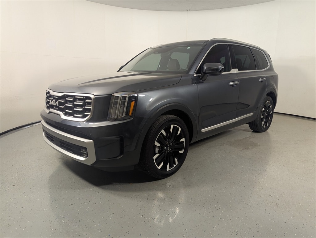 2023 Kia Telluride SX Beautifully finished in Gravity Gray with Black Leather interior. 3.8L V6 DGI DOHC Dual CVVT 4D Sport Utility AWD 8-Speed Automatic 10 Speakers, 3.648 Axle Ratio, 3rd row seats: split-bench, 4-Wheel Disc Brakes, ABS brakes, Air Conditioning, Alloy wheels, AM/FM radio: SiriusXM, Apple CarPlay & Android Auto, Auto High-beam Headlights, Auto-dimming Rear-View mirror, Automatic temperature control, Brake assist, Bumpers: body-color, Carpet Floor Mats, Compass, Delay-off headlights, Driver door bin, Driver vanity mirror, Dual front impact airbags, Dual front side impact airbags, Electronic Stability Control, Emergency communication system: 911 Connect, Exterior Parking Camera Rear, Four wheel independent suspension, Front anti-roll bar, Front Bucket Seats, Front Center Armrest, Front dual zone A/C, Front fog lights, Front reading lights, Fully automatic headlights, Garage door transmitter: HomeLink, harman/kardon® Speakers, Heated & Ventilated Front Bucket Seats, Heated door mirrors, Heated front seats, Heated steering wheel, Illuminated entry, Knee airbag, Leather Seat Trim, Leather Shift Knob, Leather steering wheel, Low tire pressure warning, Mahogany Interior Color Package, Memory seat, Navigation System, Occupant sensing airbag, Outside temperature display, Overhead airbag, Overhead console, Panic alarm, Passenger door bin, Passenger vanity mirror, Power door mirrors, Power driver seat, Power Liftgate, Power moonroof, Power passenger seat, Power steering, Power windows, Radio data system, Radio: AM/FM harman/kardon Audio System, Rear air conditioning, Rear anti-roll bar, Rear audio controls, Rear reading lights, Rear side impact airbag, Rear window defroster, Rear window wiper, Reclining 3rd row seat, Remote keyless entry, Roof rack: rails only, Security system, Smart Key w/ Push Button and Remote Start, Speed control, Speed-sensing steering, Split folding rear seat, Spoiler, Steering wheel mounted audio controls, Tachometer, Telescoping steering wheel, Tilt steering wheel, Traction control, Trip computer, Turn signal indicator mirrors, Variably intermittent wipers, Ventilated front seats, Wheel Locks, Wheels: 20" x 7.5" Black Finish. CARFAX One-Owner. Priced below KBB Fair Purchase Price!