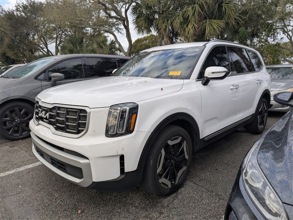 2024 Kia Telluride S Beautifully finished in Glacial White Pearl with Gray Artificial Leather interior. 3.8L V6 DOHC 4D Sport Utility FWD 8-Speed Automatic 3.510 Axle Ratio, 3rd row seats: split-bench, 4-Wheel Disc Brakes, 6 Speakers, ABS brakes, Air Conditioning, Alloy wheels, AM/FM radio: SiriusXM, Apple CarPlay & Android Auto, Auto High-beam Headlights, Automatic temperature control, Brake assist, Bumpers: body-color, Carpet Floor Mats, Delay-off headlights, Driver door bin, Driver vanity mirror, Dual front impact airbags, Dual front side impact airbags, Electronic Stability Control, Emergency communication system: 911 Connect, Exterior Parking Camera Rear, Four wheel independent suspension, Front anti-roll bar, Front Bucket Seats, Front Center Armrest, Front dual zone A/C, Front reading lights, Fully automatic headlights, Heated door mirrors, Heated Front Bucket Seats, Heated front seats, Illuminated entry, Knee airbag, Leather Shift Knob, Leather steering wheel, Low tire pressure warning, Navigation System, Occupant sensing airbag, Outside temperature display, Overhead airbag, Overhead console, Panic alarm, Passenger door bin, Passenger vanity mirror, Power door mirrors, Power driver seat, Power steering, Power windows, Radio data system, Radio: AM/FM Display Audio System, Rear air conditioning, Rear anti-roll bar, Rear audio controls, Rear reading lights, Rear side impact airbag, Rear window defroster, Rear window wiper, Reclining 3rd row seat, Remote keyless entry, Roof rack: rails only, Security system, Smart Key w/ Push Button and Remote Start, Speed control, Speed-sensing steering, Split folding rear seat, Spoiler, Steering wheel mounted audio controls, SynTex Synthetic Leather Seat Trim, Tachometer, Telescoping steering wheel, Tilt steering wheel, Traction control, Trip computer, Turn signal indicator mirrors, Variably intermittent wipers, Wheels: 20" x 7.5" Black Finish. Priced below KBB Fair Purchase Price! 20/26 City/Highway MPG