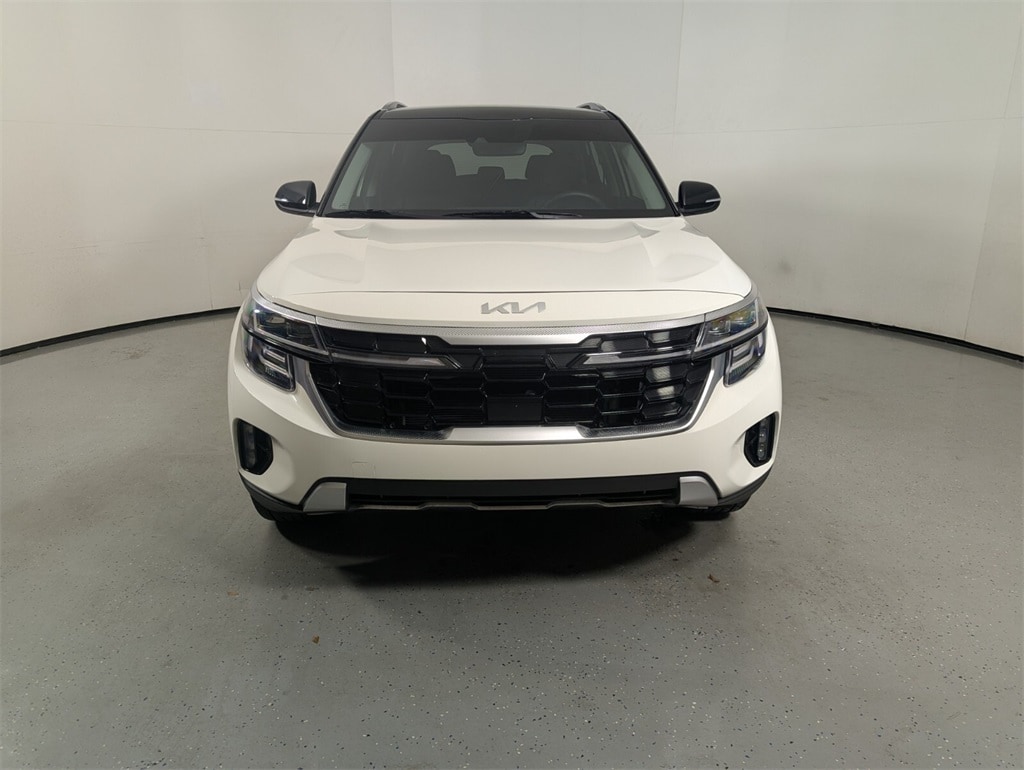 2025 Kia Seltos SX Beautifully finished in Clear White/Black Roof with Black Artificial Leather interior. I4 4D Sport Utility AWD 8-Speed Automatic 4-Wheel Disc Brakes, 8 Speakers, ABS brakes, Air Conditioning, Alloy wheels, AM/FM radio: SiriusXM, Apple CarPlay & Android Auto, Artificial Leather Seat Trim, Auto High-beam Headlights, Auto-dimming Rear-View mirror, Automatic temperature control, Brake assist, Bumpers: body-color, Carpet Floor Mats, Delay-off headlights, Driver door bin, Driver vanity mirror, Dual front impact airbags, Dual front side impact airbags, Electronic Stability Control, Emergency communication system: 911 Connect, Exterior Parking Camera Rear, Four wheel independent suspension, Front anti-roll bar, Front Bucket Seats, Front Center Armrest, Front fog lights, Front reading lights, Fully automatic headlights, Heated door mirrors, Heated Front Bucket Seats (3-Steps), Heated front seats, Illuminated entry, Leather Shift Knob, Leather steering wheel, Low tire pressure warning, Navigation System, Occupant sensing airbag, Outside temperature display, Overhead airbag, Overhead console, Panic alarm, Passenger door bin, Passenger vanity mirror, Power door mirrors, Power driver seat, Power Liftgate, Power steering, Power windows, Radio: AM/FM/HD/Satellite Display System w/Navigation, Rear seat center armrest, Rear window defroster, Rear window wiper, Remote keyless entry, Security system, Speed control, Speed-sensing steering, Split folding rear seat, Spoiler, Sport steering wheel, Steering wheel mounted audio controls, Tachometer, Telescoping steering wheel, Tilt steering wheel, Traction control, Trip computer, Turn signal indicator mirrors, Variably intermittent wipers, Wheels: 18" Alloy w/Machined Finish. CARFAX One-Owner. Clean CARFAX. Priced below KBB Fair Purchase Price! 24/27 City/Highway MPG