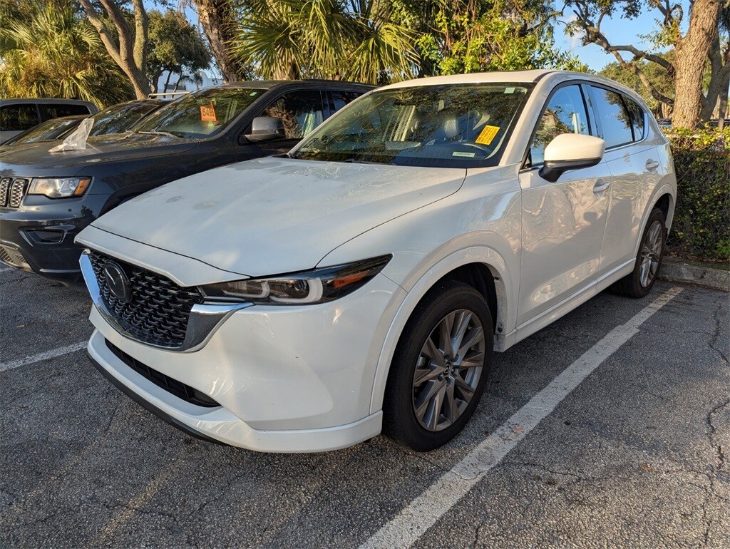 2024 Mazda CX-5 2.5 S Premium Package Beautifully finished in Rhodium White Metallic with Black Leather interior. SKYACTIV® 2.5L 4-Cylinder DOHC 16V 4D Sport Utility AWD 6-Speed Automatic 10 Speakers, 4-Wheel Disc Brakes, ABS brakes, Air Conditioning, Alloy wheels, AM/FM radio: SiriusXM, AppLink/Apple CarPlay and Android Auto, Auto High-beam Headlights, Auto-dimming Rear-View mirror, Automatic temperature control, Brake assist, Bumpers: body-color, Delay-off headlights, Driver door bin, Driver vanity mirror, Dual front impact airbags, Dual front side impact airbags, E911 Automatic Emergency Notification, Electronic Stability Control, Emergency communication system: MAZDA CONNECT, Exterior Parking Camera Rear, Four wheel independent suspension, Front anti-roll bar, Front Bucket Seats, Front Center Armrest w/Storage, Front dual zone A/C, Front reading lights, Fully automatic headlights, Garage door transmitter: HomeLink, Heated door mirrors, Heated Front Bucket Seats, Heated front seats, Illuminated entry, Infotainment System Voice Command, Leather Seat Trim, Leather Shift Knob, Leather steering wheel, Low tire pressure warning, Memory seat, Multifunction Commander Control, Occupant sensing airbag, Outside temperature display, Overhead airbag, Overhead console, Pandora, Panic alarm, Passenger door bin, Passenger vanity mirror, Power door mirrors, Power driver seat, Power Liftgate, Power moonroof, Power passenger seat, Power steering, Power windows, Radio Broadcast Data System Program Information, Radio data system, Radio: AM/FM/HD Audio System, Rain sensing wipers, Rear anti-roll bar, Rear Bumper Guard, Rear reading lights, Rear seat center armrest, Rear window defroster, Rear window wiper, Remote keyless entry, Rhodium White Metallic Paint, SMS Text Msg Audio Delivery & Reply, Speed control, Speed-sensing steering, Split folding rear seat, Spoiler, Steering wheel mounted audio controls, Tachometer, Telescoping steering wheel, Tilt steering wheel, Traction control, Trip computer, Turn signal indicator mirrors, Variably intermittent wipers, Wheels: 19" x 7J Aluminum Alloy. Clean CARFAX. Priced below KBB Fair Purchase Price! 23/29 City/Highway MPG
