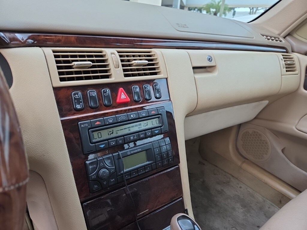 Features: E 430, 4D Sedan, 4.3L V8 SMPI SOHC, 5-Speed Automatic with Overdrive, RWD, White, 4-Wheel Disc Brakes, 8 Speakers, ABS brakes, Air Conditioning, Alloy wheels, AM/FM radio, Auto-dimming door mirrors, Auto-dimming Rear-View mirror, Automatic temperature control, Bodyside moldings, Brake assist, Bumpers: body-color, Cassette, Child-Seat-Sensing Airbag, Delay-off headlights, Driver door bin, Driver vanity mirror, Dual front impact airbags, Dual front side impact airbags, Electronic Stability Control, Emergency communication system: Tele Aid, Four wheel independent suspension, Front anti-roll bar, Front Bucket Seats, Front Center Armrest w/Storage, Front dual zone A/C, Front fog lights, Front reading lights, Garage door transmitter: Homelink, Genuine wood console insert, Genuine wood dashboard insert, Genuine wood door panel insert, Head restraints memory, Heated door mirrors, HVAC memory, Illuminated entry, Leather Shift Knob, Leather steering wheel, Memory seat, Occupant sensing airbag, Outside temperature display, Overhead airbag, Overhead console, Panic alarm, Passenger door bin, Passenger vanity mirror, Power adjustable front head restraints, Power adjustable rear head restraints, Power door mirrors, Power driver seat, Power passenger seat, Power steering, Power windows, Premium Leather Seat Trim, Rear anti-roll bar, Rear fog lights, Rear seat center armrest, Rear side impact airbag, Rear window defroster, Remote keyless entry, Security system, Speed control, Speed-sensing steering, Steering wheel memory, Steering wheel mounted audio controls, Tachometer, Telescoping steering wheel, Tilt steering wheel, Traction control, Turn signal indicator mirrors, and Weather band radio.