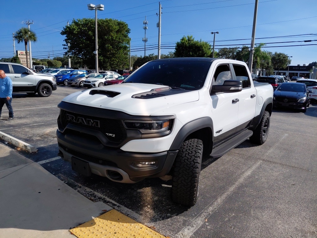 This 1500 is well equipped with Advanced Safety Group (Adaptive Cruise Control w/Stop & Go, Lane Keep Assist, and Pedestrian Emergency Braking), Quick Order Package 29Y, Technology Group (Heads-Up Display, LED CHMSL Lamp, and Rearview Autodim Digital Display Mirror), Trailer Tow Group (Trailer Brake Control, Trailer Light Check, and Trailer Tire Pressure Monitoring System), TRX Level 2 Equipment Group (4 Way Front Headrests, Blind Spot & Cross Path Detection, Body Color Door Handles, Bucket Seats, Driver Seat Memory, Driver/Passenger Wrapped Assist Handles, Exterior Mirrors w/Memory, Front Door Accent Lighting, Full Length Premium Upgraded Floor Console, Heated Front Seats, Heated Second Row Seats, Heated Steering Wheel, IP LED Ambient Light Pipe, Leather Trimmed Bucket Seats, Leather/Suede Flat-Bottom Steering Wheel, Luxury Front Door Trim Panel, ParkSense Front/Rear Park Assist w/Stop, Pick-Up Box Lighting, Power 4-Way Driver Lumbar Adjust, Power 4-Way Passenger Lumbar Adjust, Power 8-Way Driver & Passenger Seats, Power Adjustable Pedals w/Memory, Premium Wrapped IP Bezel, Radio/Driver Seat/Mirrors/Pedals Memory, Rain Sensitive Windshield Wipers, Rear 60/40 Folding Split Recline Seat, Rear Door Accent Lighting, Rear Underseat Compartment Storage, Rear Window Defroster, Remote Proximity Keyless Entry, Remote Start System, Remote Tailgate Release, Sun Visors w/Illuminated Vanity Mirrors, Surround View Camera System, Universal Garage Door Opener, Ventilated Front Seats, Ventilated Rear Seats, and Wireless Charging Pad), 10 Speakers, 3.55 Rear Axle Ratio, 4-Wheel Disc Brakes, ABS brakes, Adaptive suspension, Air Conditioning, Alloy wheels, AM/FM radio: SiriusXM with 360L, Apple CarPlay/Android Auto, Auto High-beam Headlights, Auto-dimming door mirrors, Auto-dimming Rear-View mirror, Automatic temperature control, Black Exterior Mirrors, Brake assist, Cloth/Vinyl Bucket Seats, Compass, Delay-off headlights, Dome Dual LED Reading Lamp, Driver door bin, Dual front impact airbags, Dual front side impact airbags, Dual-Pane Panoramic Sunroof, Electronic Stability Control, Emergency communication system: SiriusXM Guardian, Exterior Mirrors Courtesy Lamps, Exterior Mirrors w/Heating Element, Exterior Mirrors w/Supplemental Signals, Front anti-roll bar, Front Bucket Seats, Front Center Armrest w/Storage, Front dual zone A/C, Front fog lights, Front License Plate Bracket, Front reading lights, Front wheel independent suspension, Fully automatic headlights, harman/kardon 19 Speaker Premium Sound, Heated door mirrors, Illuminated entry, Leather Shift Knob, Leather steering wheel, Low tire pressure warning, Manufacturer's Statement of Origin, MOPAR Rambar, MOPAR TRX Exterior Graphics, MOPAR TRX Hood Graphics, Navigation System/ GPS, Occupant sensing airbag, Outside temperature display, Overhead airbag, Overhead console, Panic alarm, ParkView Rear Back-Up Camera, Passenger door bin, Passenger vanity mirror, Power door mirrors, Power driver seat, Power steering, Power windows, Power-Folding Mirrors, Radio data system, Radio: Uconnect 12 w/Navigation, Rear seat center armrest, Rear step bumper, Remote keyless entry, Security system, Speed control, Split folding rear seat, Sport steering wheel, Steering wheel mounted audio controls, Tachometer, Telescoping steering wheel, Tilt steering wheel, Traction control, Trailer Reverse Steering Control, Trip computer, TRX Red Interior Accents, Turn signal indicator mirrors, Variably intermittent wipers, Voltmeter, and Wheels: 18" x 9" Black Paint/Polish Aluminum.