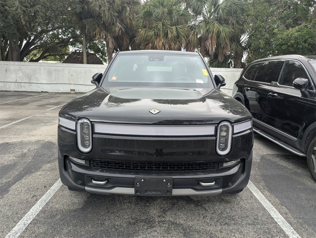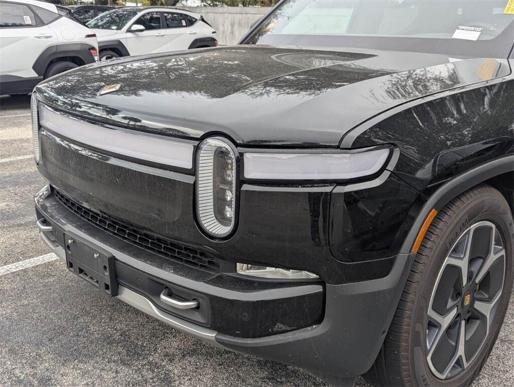 Features: 19 Speakers, 4-Wheel Disc Brakes, ABS brakes, Adaptive suspension, Air Conditioning, Alloy wheels, Audio memory, Auto High-beam Headlights, Auto tilt-away steering wheel, Auto-dimming door mirrors, Auto-dimming Rear-View mirror, Auto-leveling suspension, Automatic temperature control, Brake assist, Delay-off headlights, Driver door bin, Driver vanity mirror, Dual front impact airbags, Dual front side impact airbags, Electronic Stability Control, Emergency communication system, Exterior Parking Camera Rear, Four wheel independent suspension, Front anti-roll bar, Front Bucket Seats, Front Center Armrest, Front dual zone A/C, Front fog lights, Front reading lights, Fully automatic headlights, Genuine wood console insert, Genuine wood dashboard insert, Genuine wood door panel insert, Heated & Ventilated Front Bucket Seats, Heated door mirrors, Heated front seats, Heated steering wheel, Illuminated entry, Knee airbag, Low tire pressure warning, Memory seat, Navigation System, Occupant sensing airbag, Outside temperature display, Overhead airbag, Panic alarm, Passenger door bin, Passenger vanity mirror, Perf Vegan Leather Seat Trim w/Patterned Stitching, Power door mirrors, Power driver seat, Power passenger seat, Power steering, Power windows, Radio: Rivian Elevation Audio by Meridian, Rain sensing wipers, Rear air conditioning, Rear anti-roll bar, Rear audio controls, Rear dual zone A/C, Rear fog lights, Rear reading lights, Rear seat center armrest, Rear window defroster, Remote keyless entry, Security system, Speed control, Speed-sensing steering, Split folding rear seat, Spoiler, Steering wheel memory, Steering wheel mounted audio controls, Telescoping steering wheel, Tilt steering wheel, Traction control, Trip computer, Turn signal indicator mirrors, Variably intermittent wipers, Ventilated front seats, and Wheels: 21" Road Machined Aluminum.
