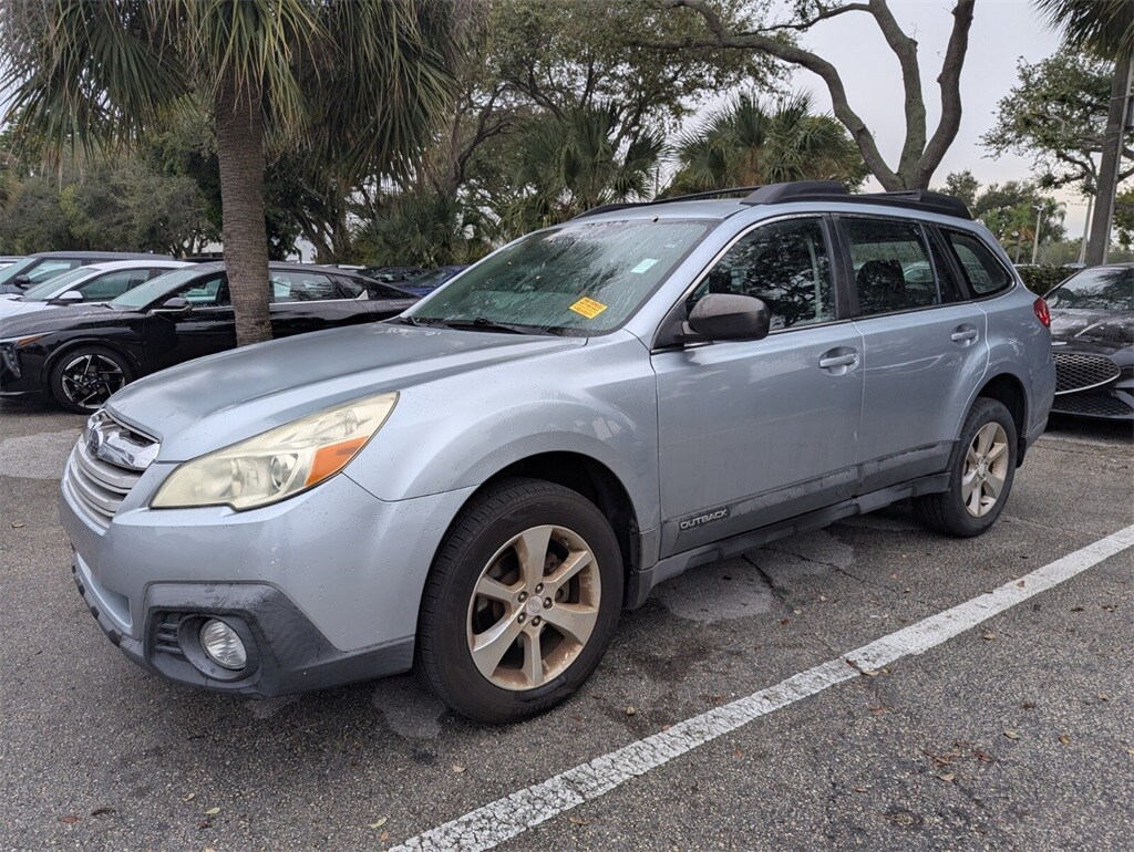 2014 Subaru Outback 2.5i Beautifully finished in Ice Silver Metallic with Black Cloth interior. 2.5L 4-Cylinder DOHC 16V 4D Sport Utility AWD CVT Lineartronic 16" x 6.5" Steel Wheels w/Full Wheel Covers, 17" Alloy Wheels, 3.90 Axle Ratio, 4 Speakers, 4-Wheel Disc Brakes, ABS brakes, Air Conditioning, Alloy Wheel Lock Kit, Alloy Wheel Package, AM/FM radio, AM/FM Stereo w/Single-Disc CD Player, Anti-whiplash front head restraints, Brake assist, Bumpers: body-color, CD player, Cloth Upholstery, Driver door bin, Driver vanity mirror, Dual front impact airbags, Dual front side impact airbags, Electronic Stability Control, Fog Lamps, Four wheel independent suspension, Front anti-roll bar, Front Bucket Seats, Front Center Armrest w/Storage, Front reading lights, Fully automatic headlights, Illuminated entry, Leather Shift Knob, Low tire pressure warning, Occupant sensing airbag, Outside temperature display, Overhead airbag, Overhead console, Panic alarm, Passenger door bin, Passenger vanity mirror, Popular Package #1B, Power door mirrors, Power steering, Power windows, Radio data system, Rear anti-roll bar, Rear seat center armrest, Rear window defroster, Rear window wiper, Remote keyless entry, Roof rack, Security system, Speed control, Speed-sensing steering, Split folding rear seat, Spoiler, Steering wheel mounted audio controls, Steering-Wheel Paddle-Shift Control Switches, Tachometer, Telescoping steering wheel, Tilt steering wheel, Traction control, Trip computer, Variably intermittent wipers. Clean CARFAX. Priced below KBB Fair Purchase Price! 24/30 City/Highway MPG