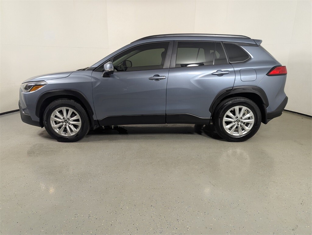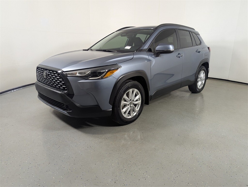 This Corolla Cross is well equipped with 17" Silver Alloy Wheels, 4-Wheel Disc Brakes, 4.014 Axle Ratio, 6 Speakers, ABS brakes, Air Conditioning, Alloy wheels, AM/FM radio: SiriusXM, Auto High-beam Headlights, Automatic temperature control, Brake assist, Bumpers: body-color, Delay-off headlights, Driver door bin, Driver vanity mirror, Dual front impact airbags, Dual front side impact airbags, Electronic Stability Control, Emergency communication system: Safety Connect (10-year trial), Exterior Parking Camera Rear, Fabric Seat Trim, Front anti-roll bar, Front Bucket Seats, Front Center Armrest, Front reading lights, Front wheel independent suspension, Fully automatic headlights, Heated door mirrors, Illuminated entry, Knee airbag, Leather steering wheel, Low tire pressure warning, Occupant sensing airbag, Outside temperature display, Overhead airbag, Panic alarm, Passenger door bin, Passenger vanity mirror, Power door mirrors, Power steering, Power windows, Radio data system, Radio: 8" Touch-Screen Display Audio, Rear anti-roll bar, Rear side impact airbag, Rear window defroster, Rear window wiper, Remote keyless entry, Speed control, Split folding rear seat, Spoiler, Steering wheel mounted audio controls, Tachometer, Telescoping steering wheel, Tilt steering wheel, Traction control, Trip computer, Turn signal indicator mirrors, and Variably intermittent wipers.